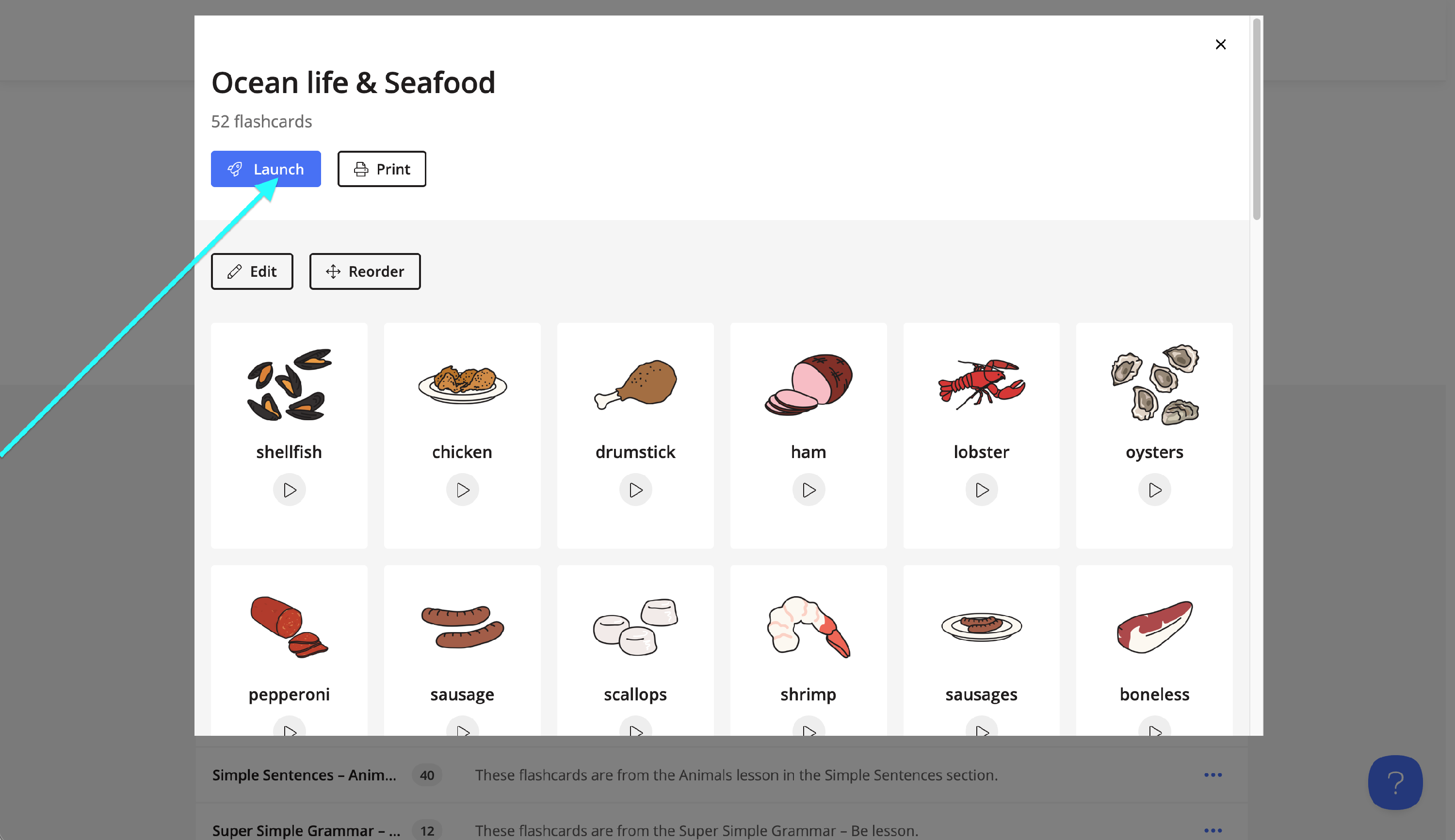 The Flashcard Player is a great tool to use when teachers want to present their flashcards to a whole class while on a whiteboard or online (via a screen-sharing application like Zoom, Google Meets, etc.).