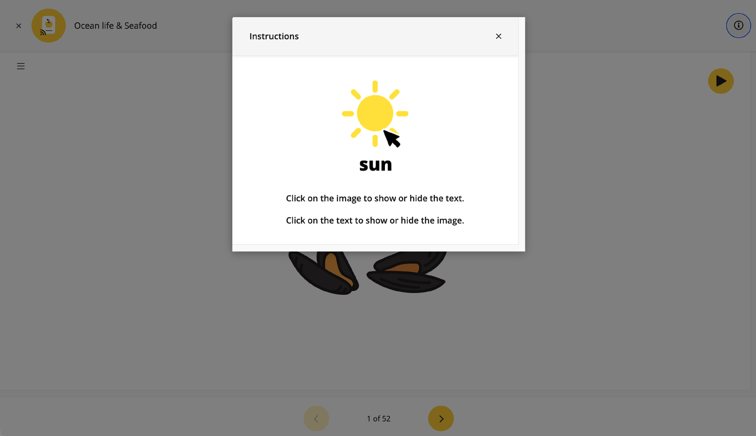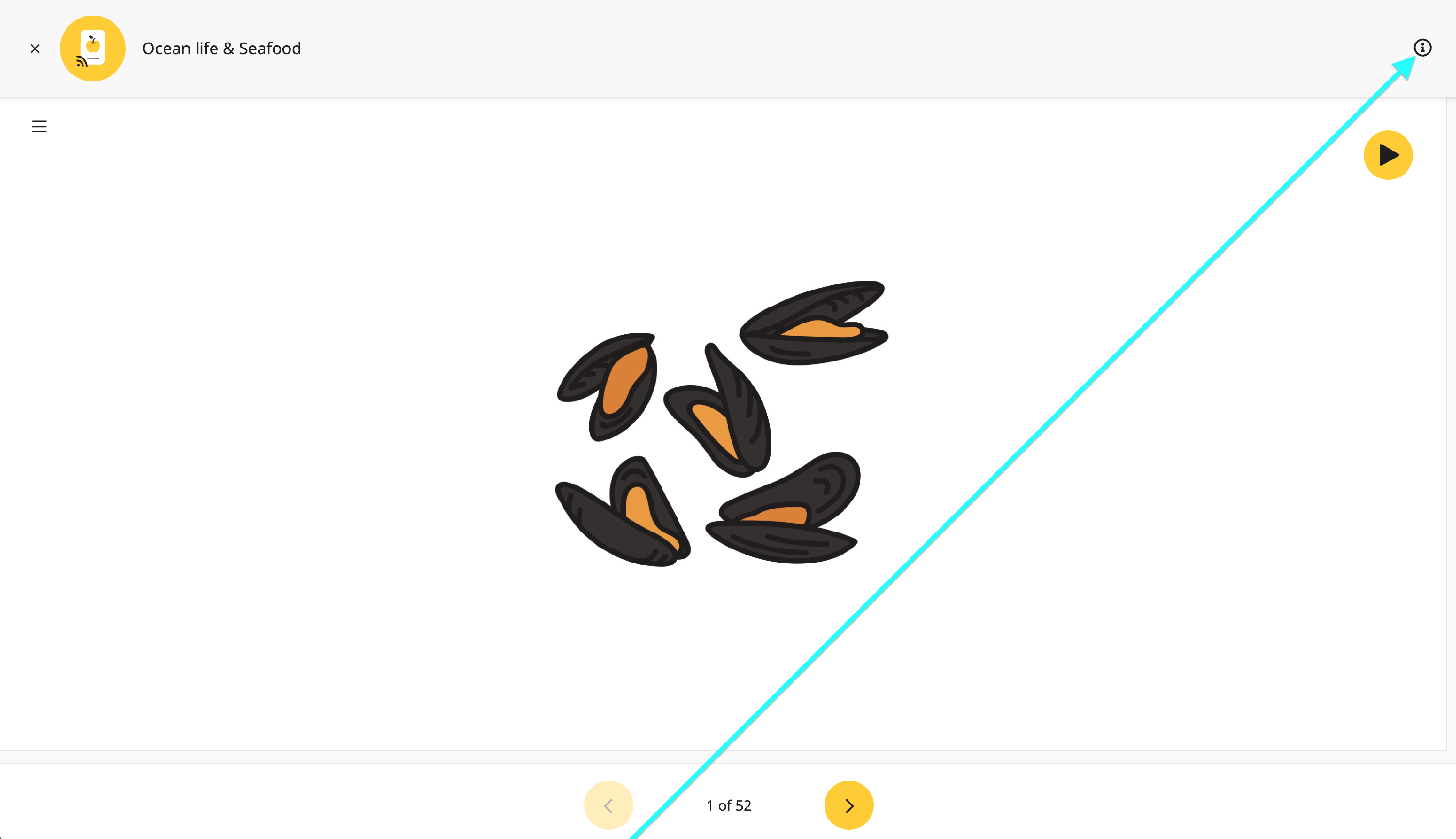Once the Flashcard Player launches, you can click on the information icon in the top right corner of the page to view the instructions.