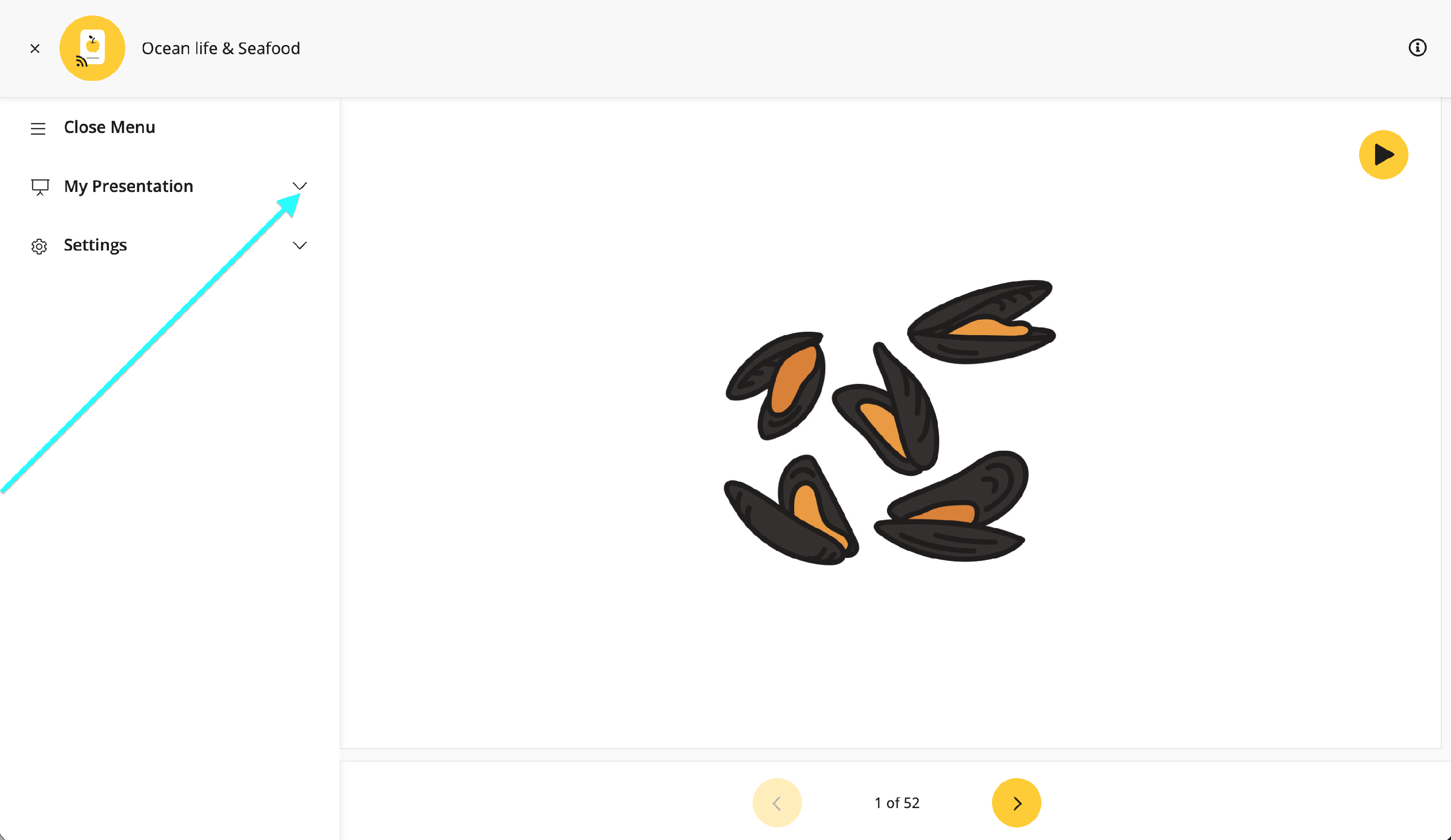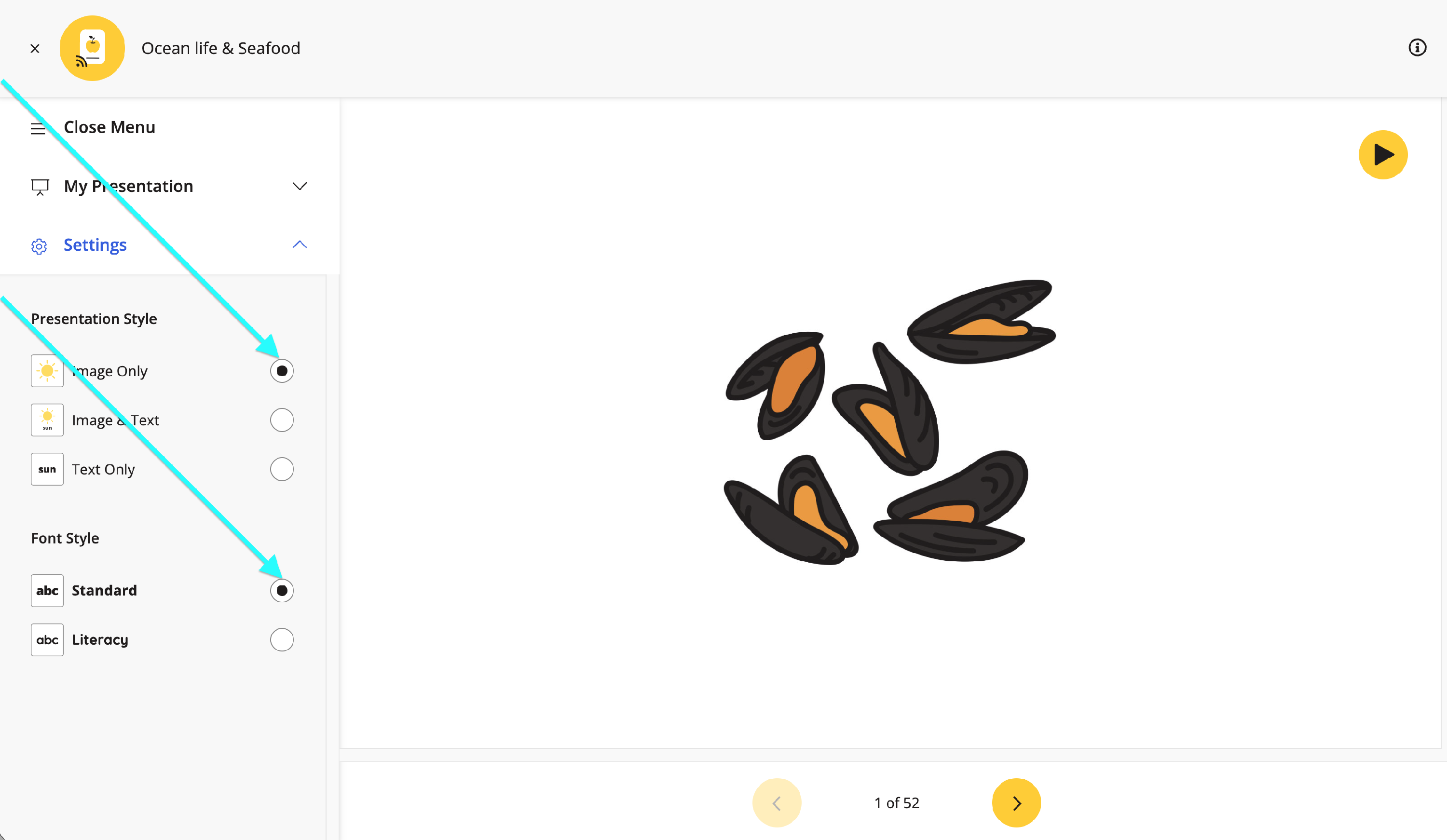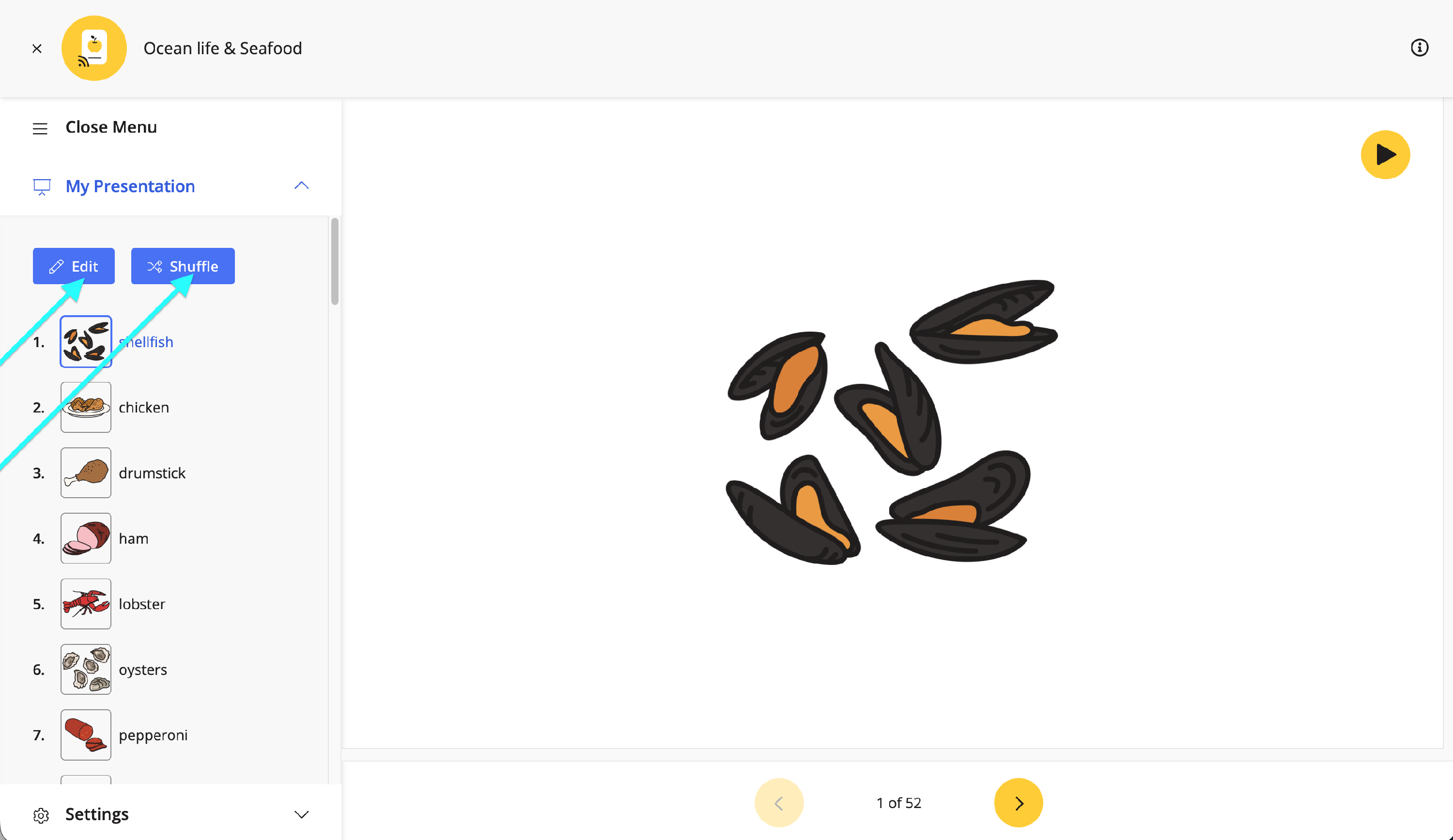Click on My Presentation to edit the text that goes with each image or to delete a flashcard from the presentation. You can also shuffle the flashcards.