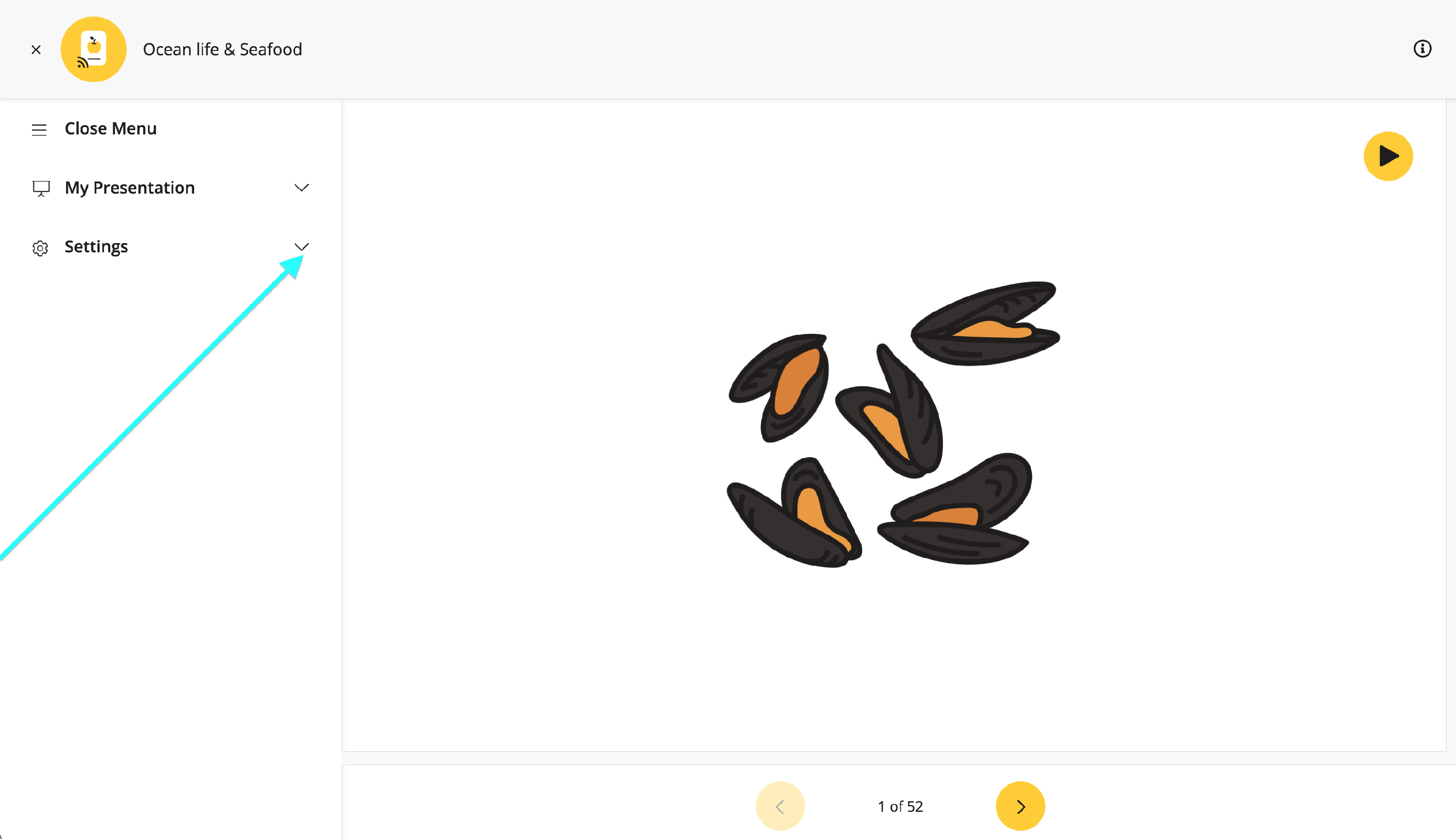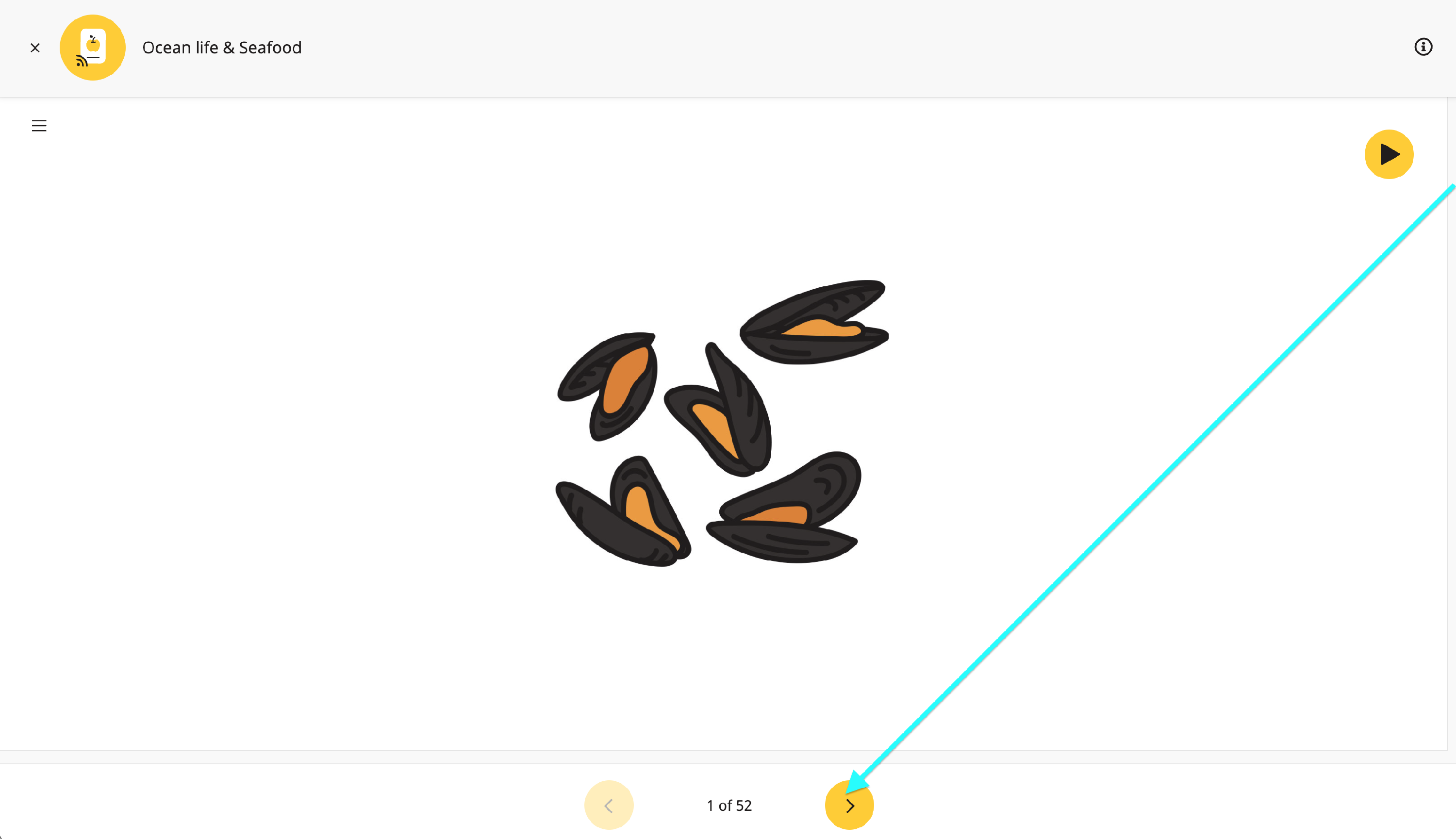 Once you are happy with your flashcard set, you can start going over the flashcards with your class. You can click on the right-facing arrow to move to the next flashcard. You can always click on the left-facing arrow to move back to the previous flashcard.