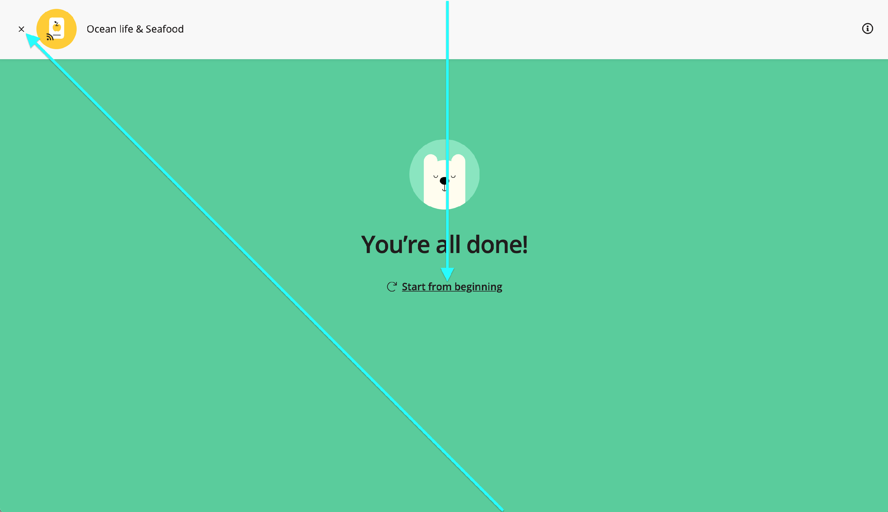 When you are finished presenting your flashcard set, you can click on the X to exit the Flashcard Player or click on Start from beginning to restart the flashcard set.