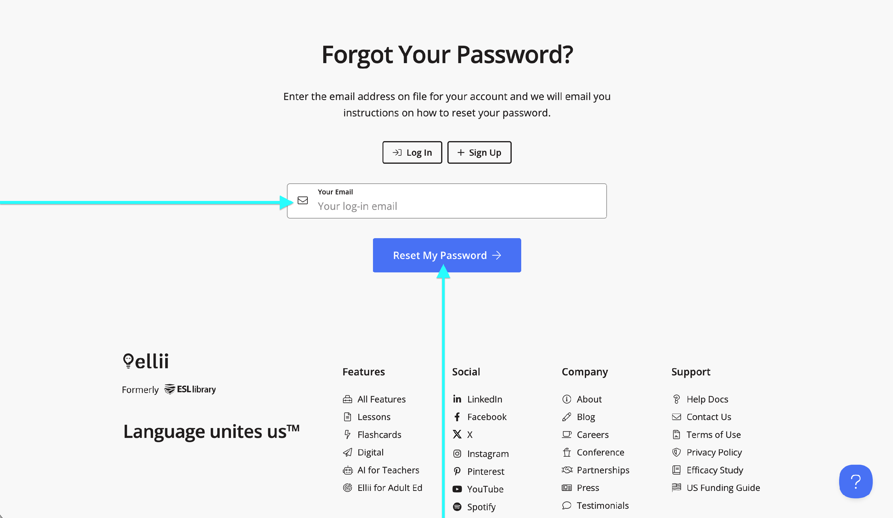 On the Forgot Your Password? page, enter the email address your account is associated with and click Reset My Password.