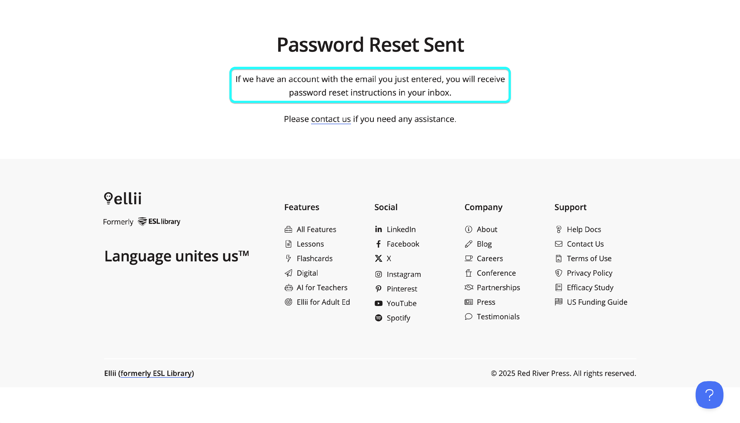 You will land on a page that confirms that your password reset instructions were emailed to you if you have an account with the email address you entered.