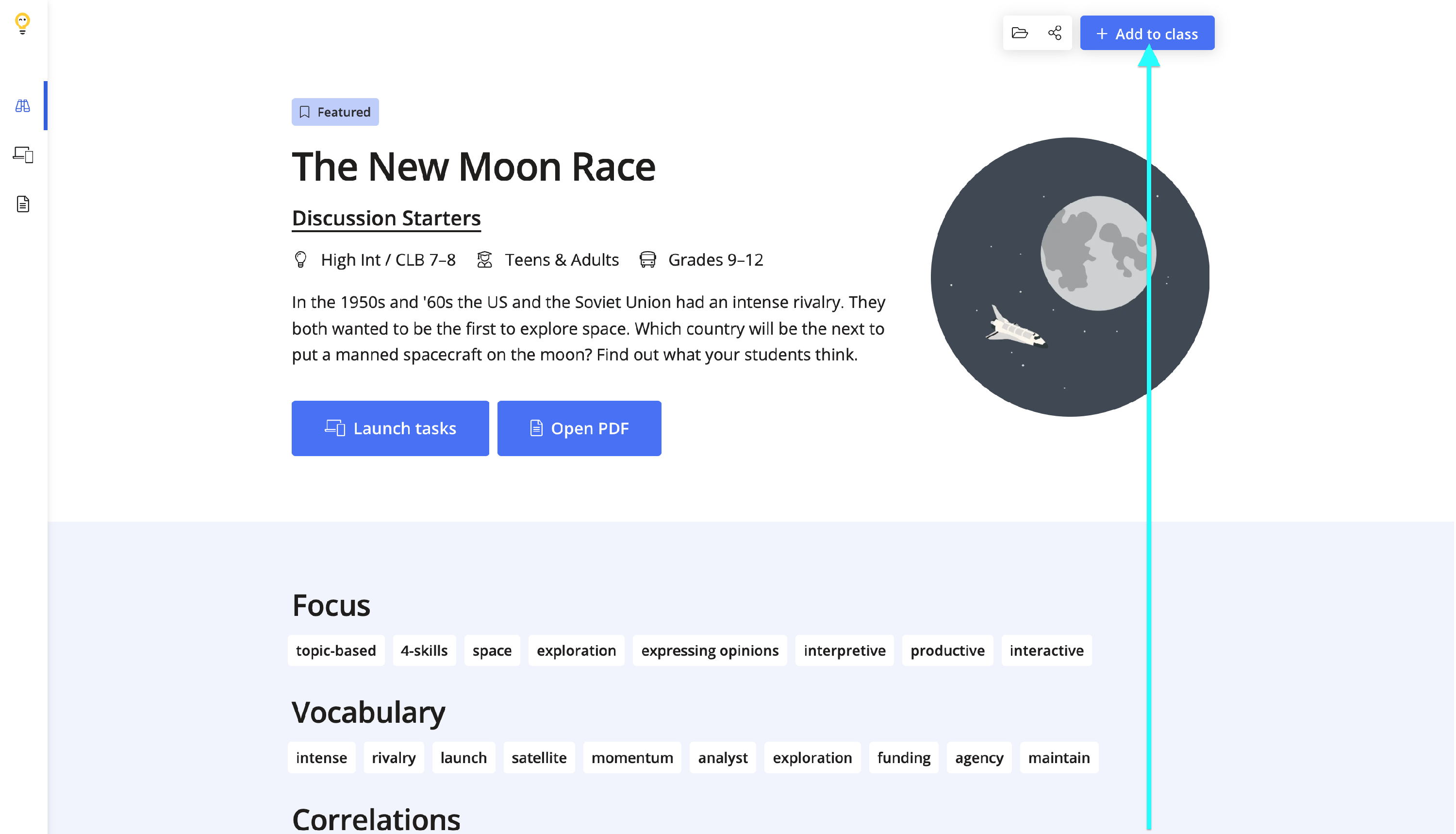 Clicking on Add to class will send the lesson as digital homework to your class.