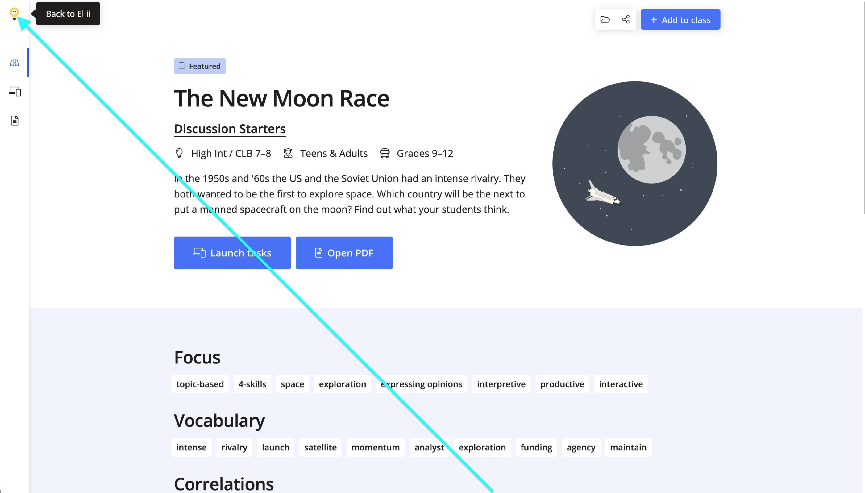After assigning the lesson, teachers will be automatically returned to Overview. Clicking on our logo brings teachers back to Ellii.