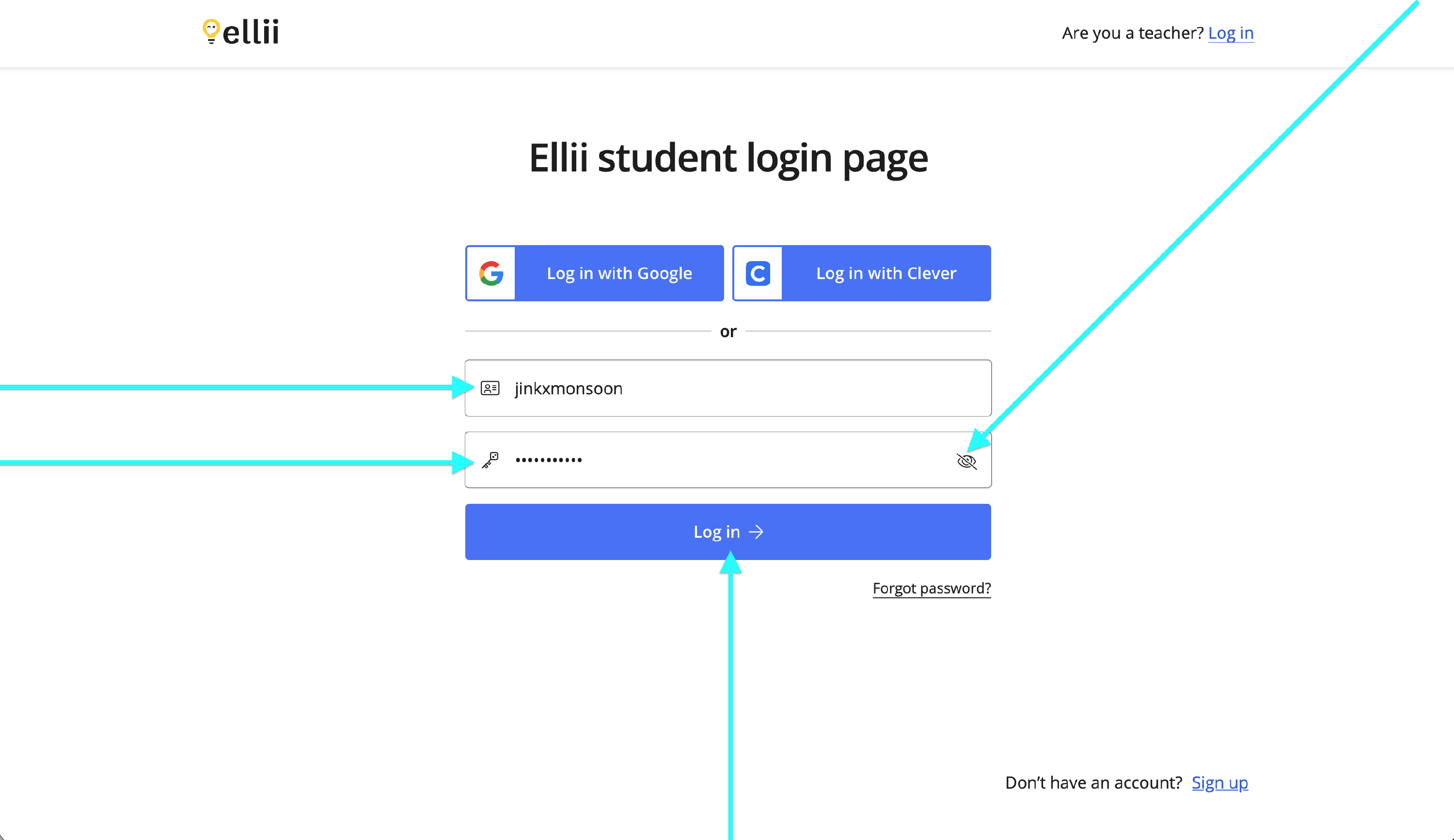 Welcome to Ellii! If you are having difficulty logging in to your student account, please follow the steps below.