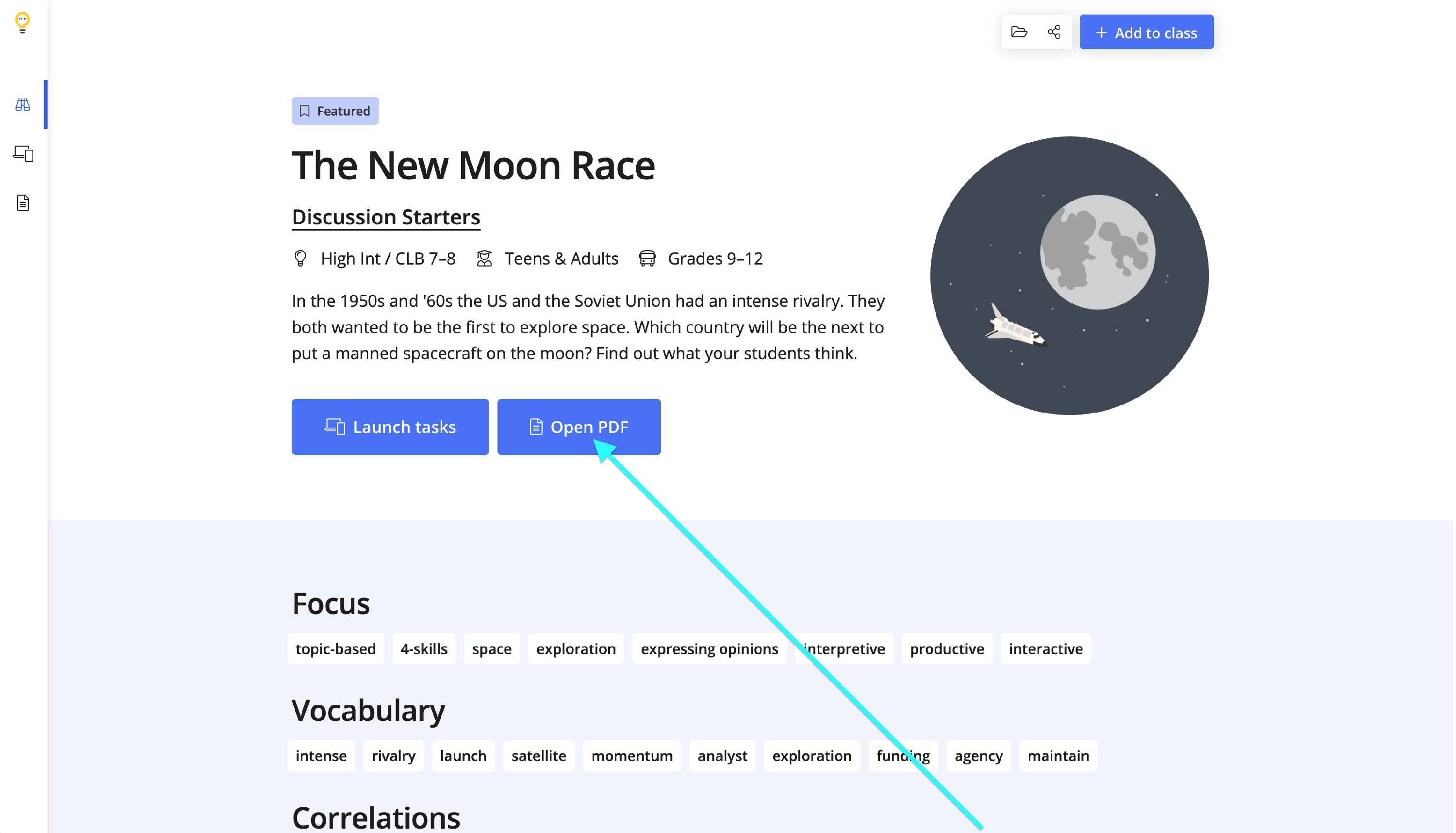Teachers are able to share the printable materials (lessons or resources) with their students via a link or on Google Classroom. Follow the steps below to learn how to share a PDF with your students.
