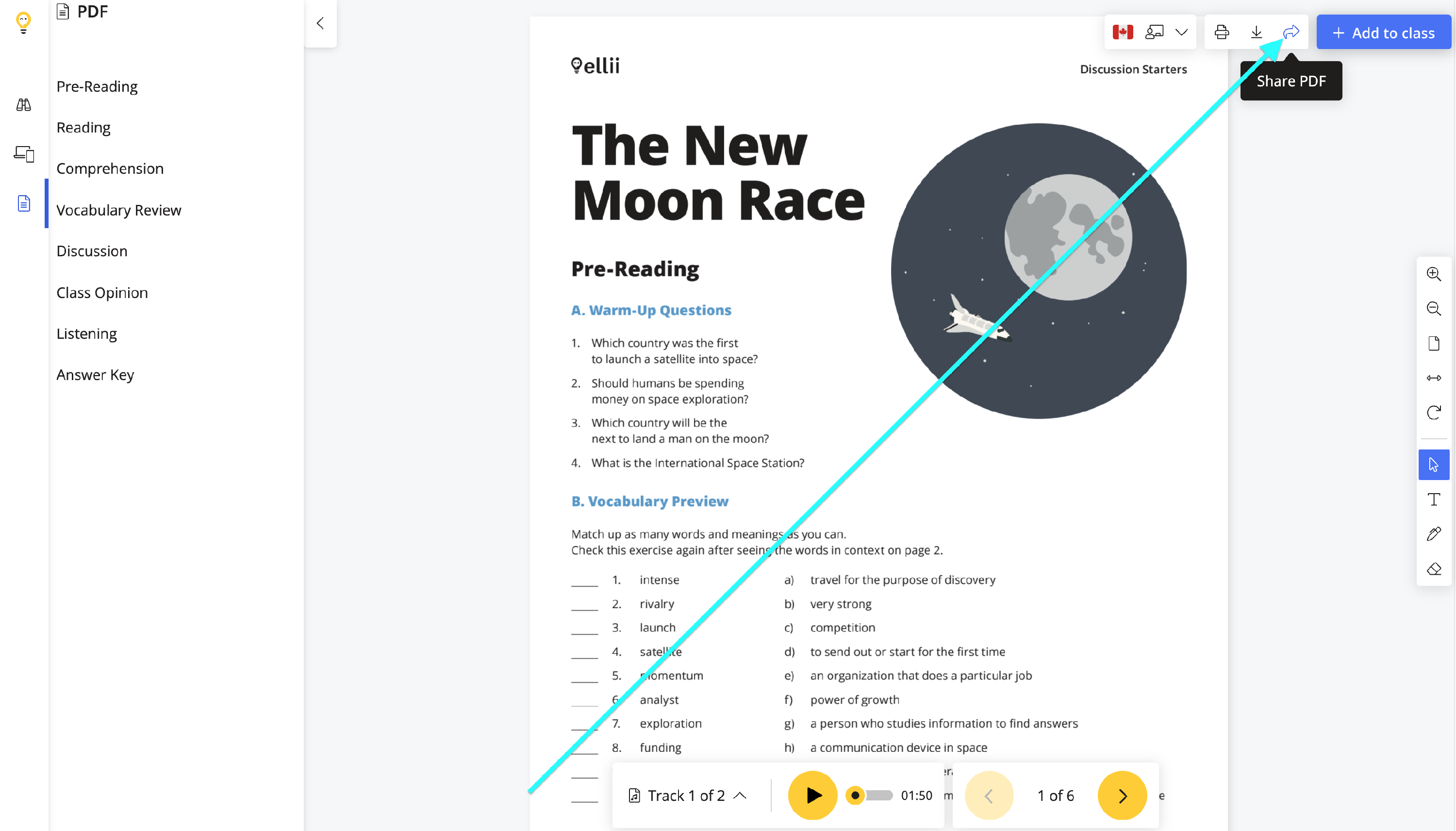 Click on the Share PDF button to share the link with your class or to post the link to Google Classroom.