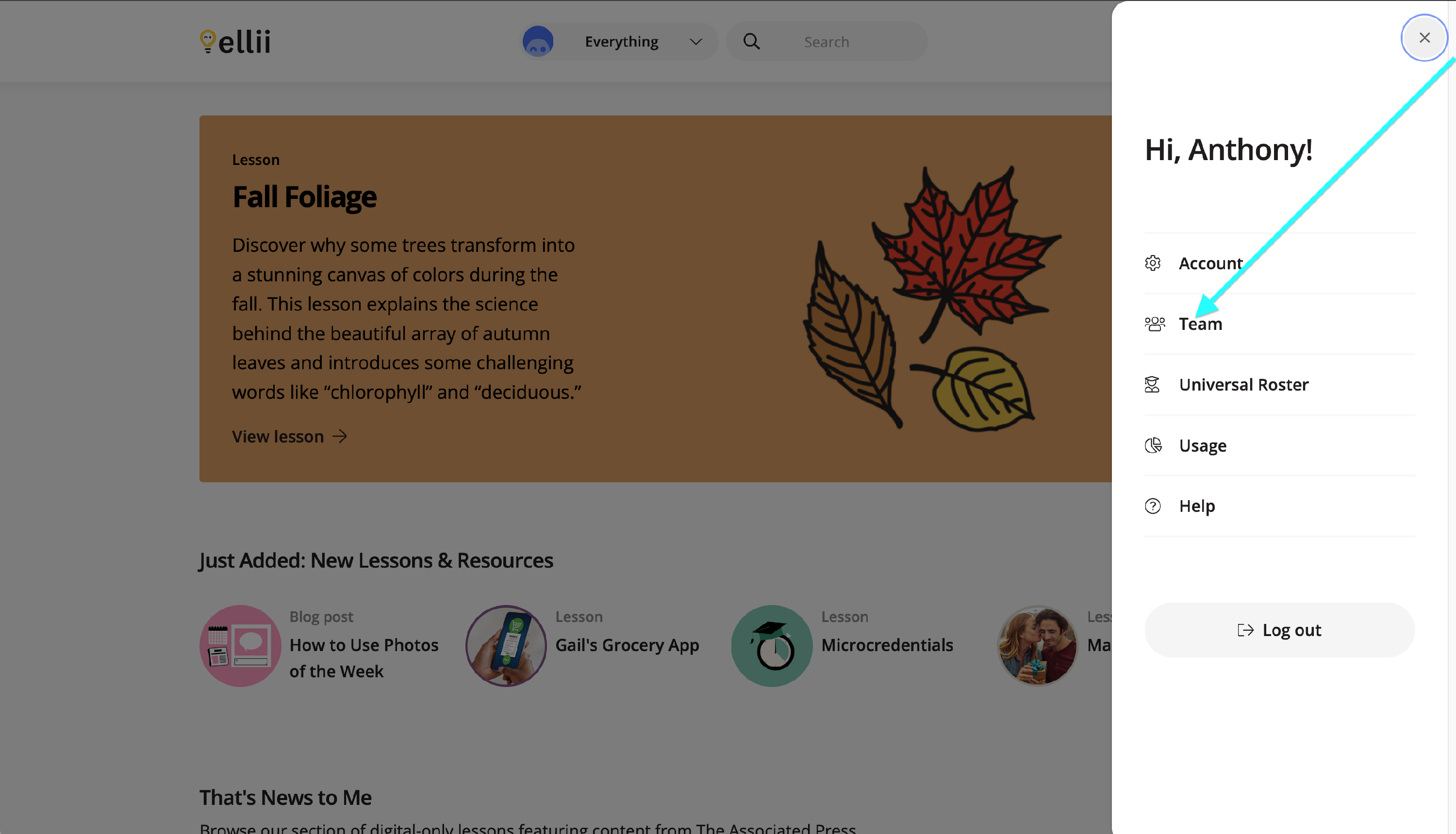 Once you’ve logged in successfully, click on the profile icon in the top right corner and select Team.