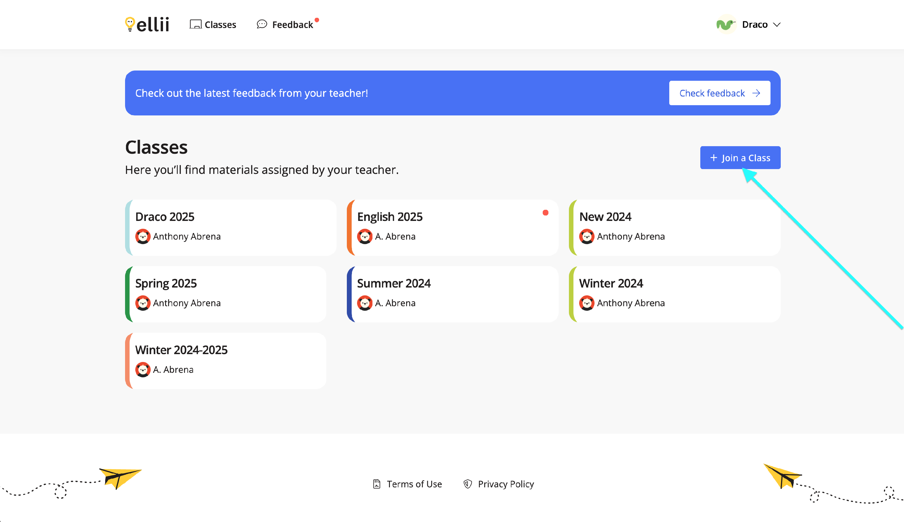 Once inside a class, you will find the Class Code on the top right by the class name.
