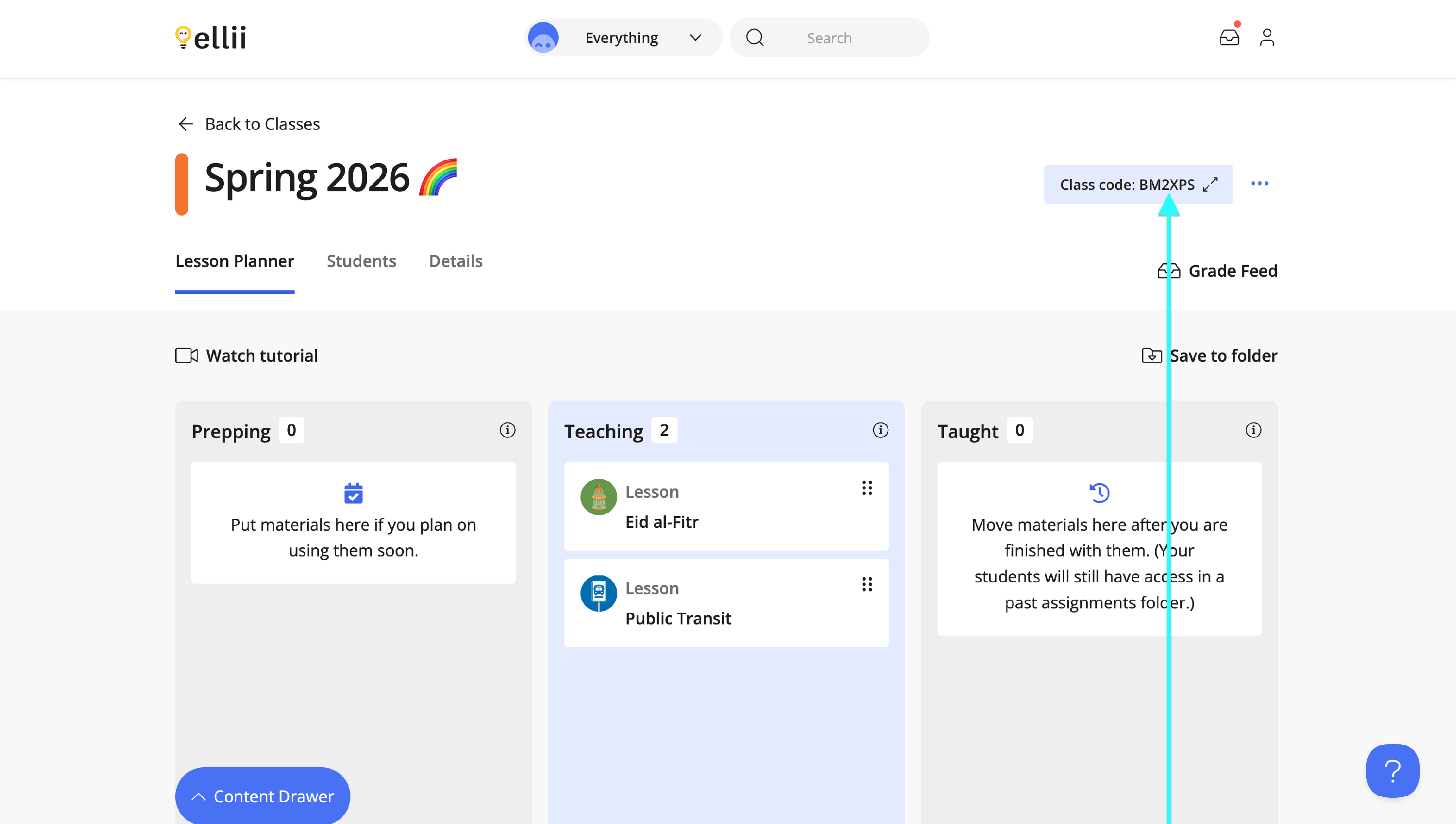 Once inside a class, you will find your class code on the top right by the class name.
