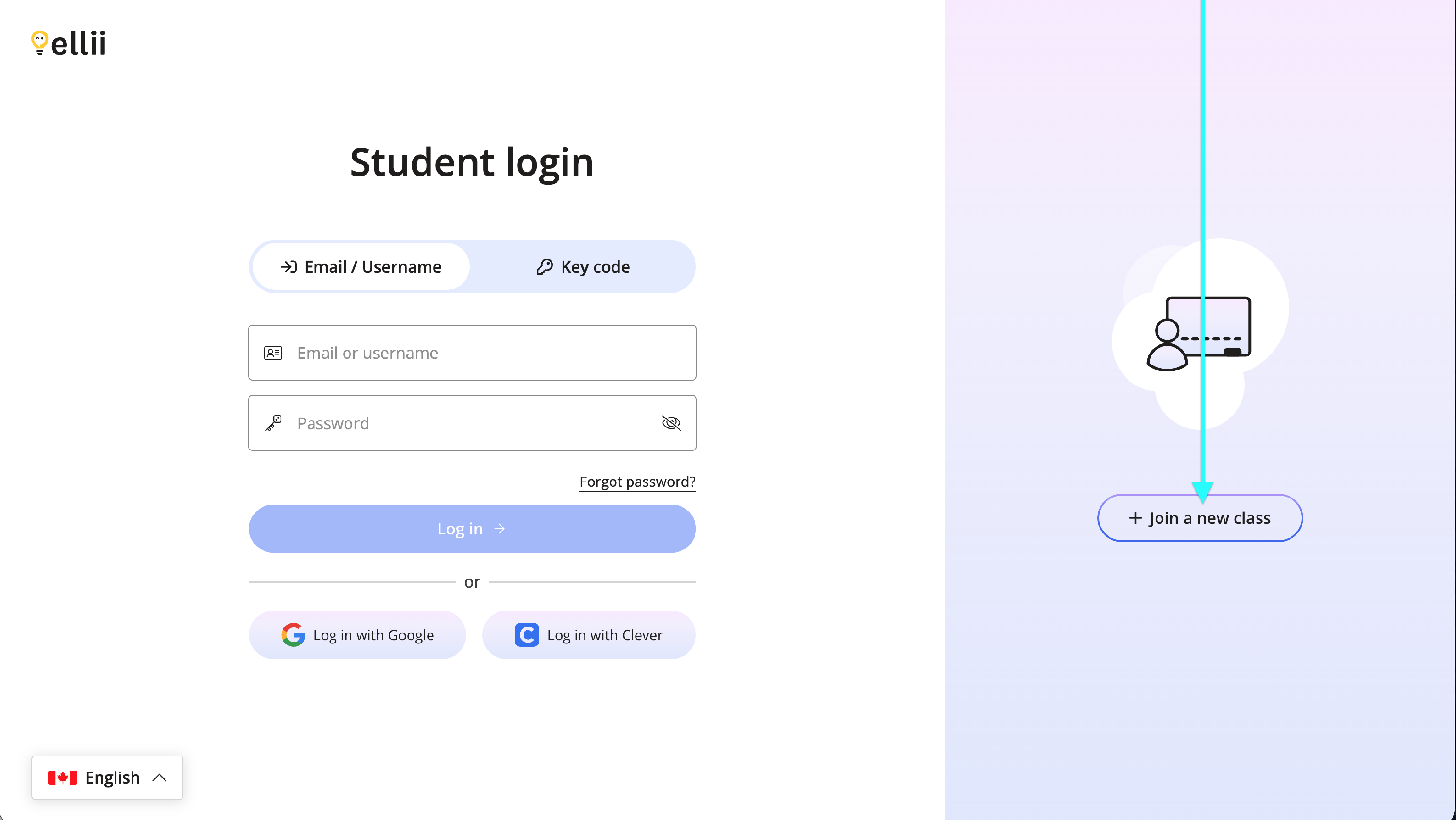 Next, students will navigate to https://ellii.com/students and click Join a new class.