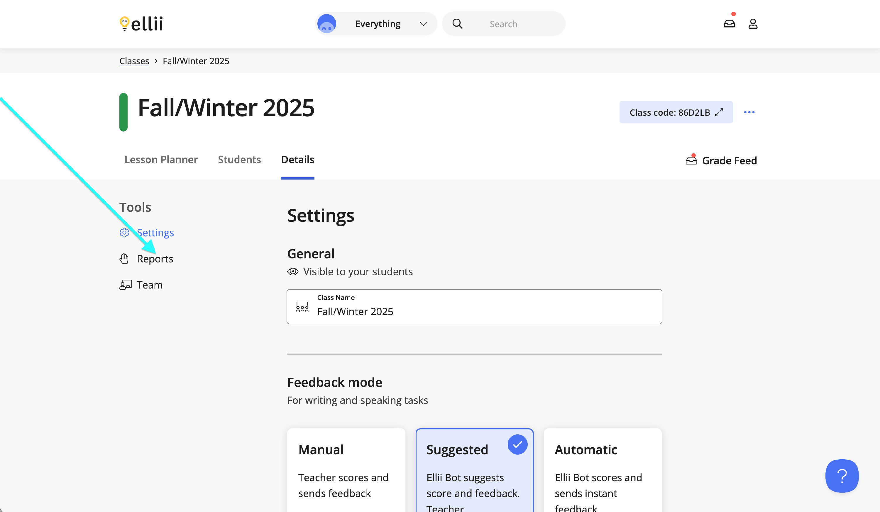 You will land on the Classes page, where you will see a list of your classes. Click on the class you would like to see the reports for.