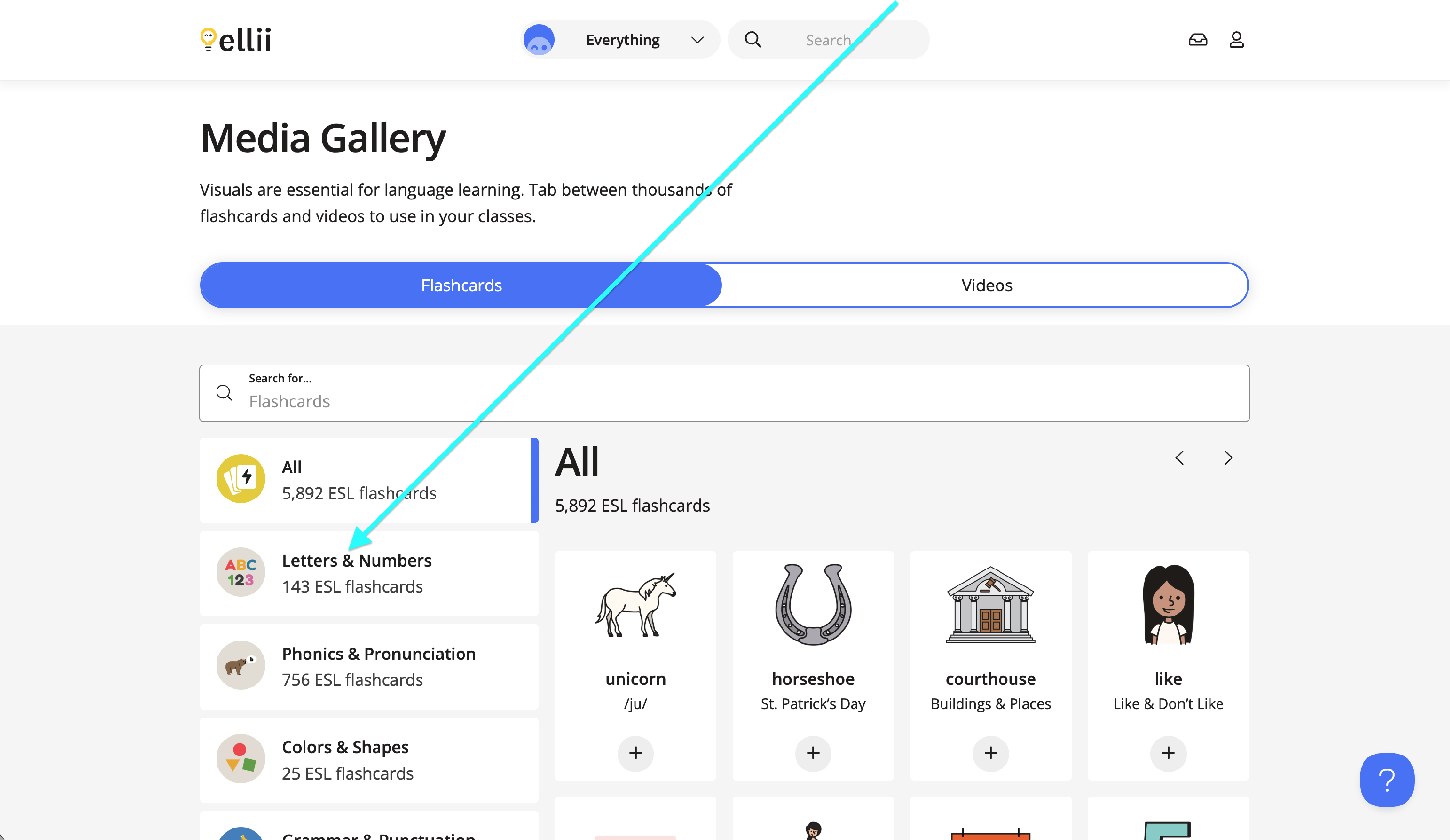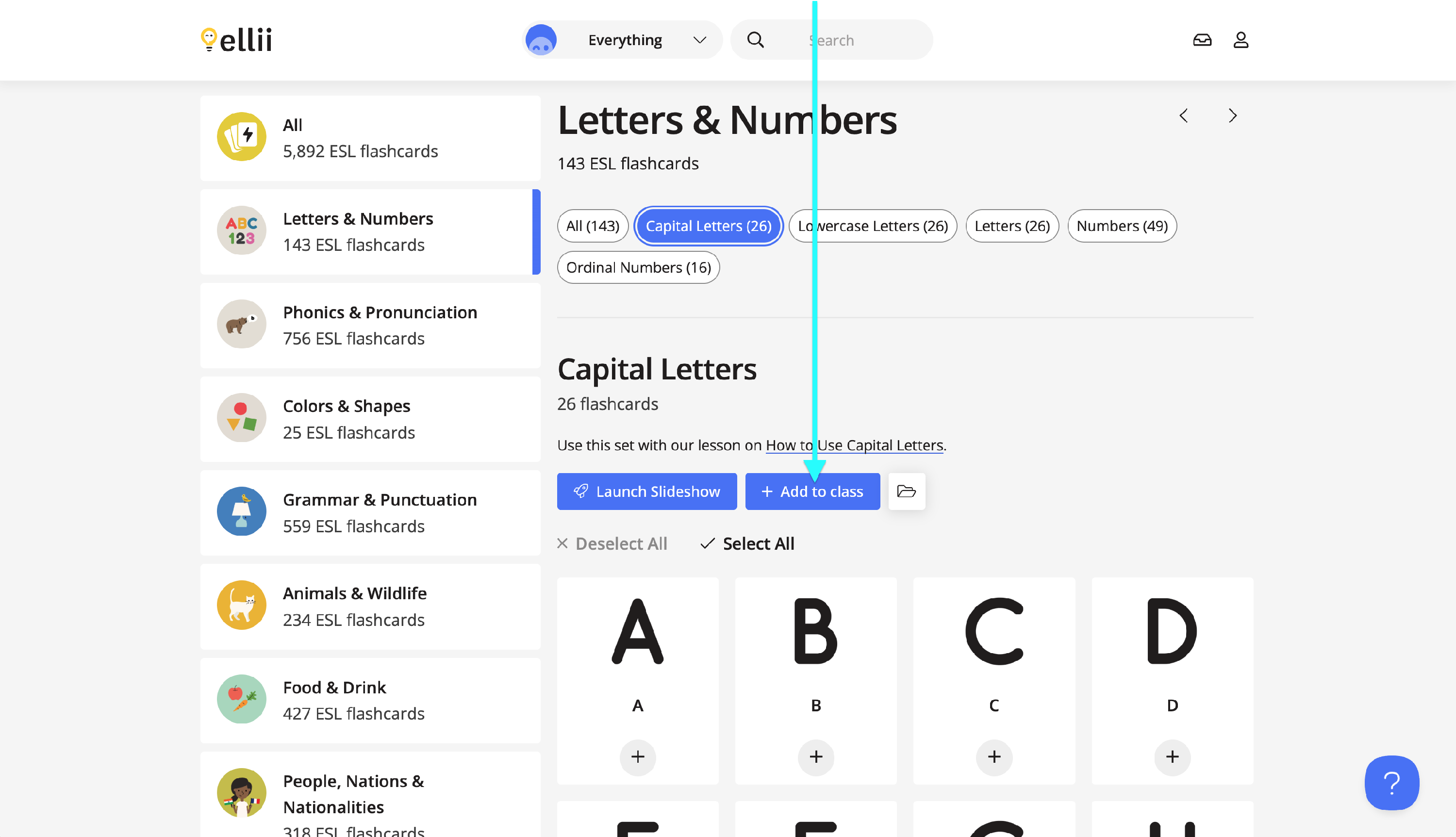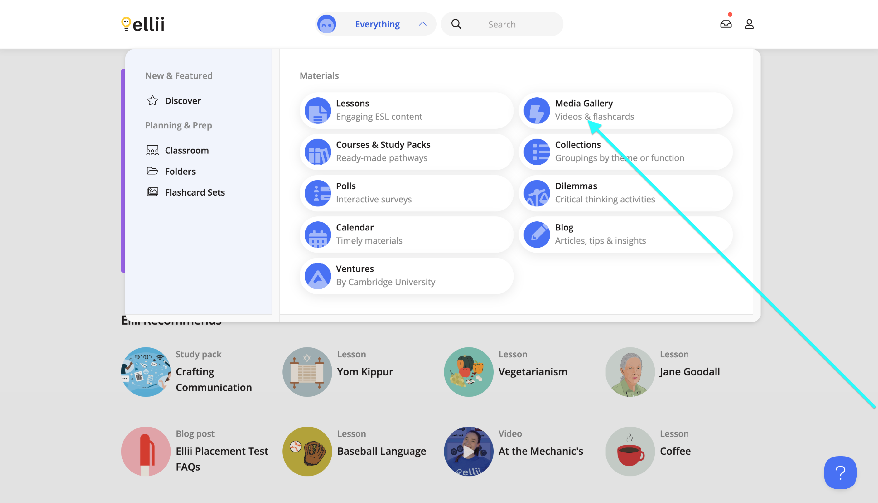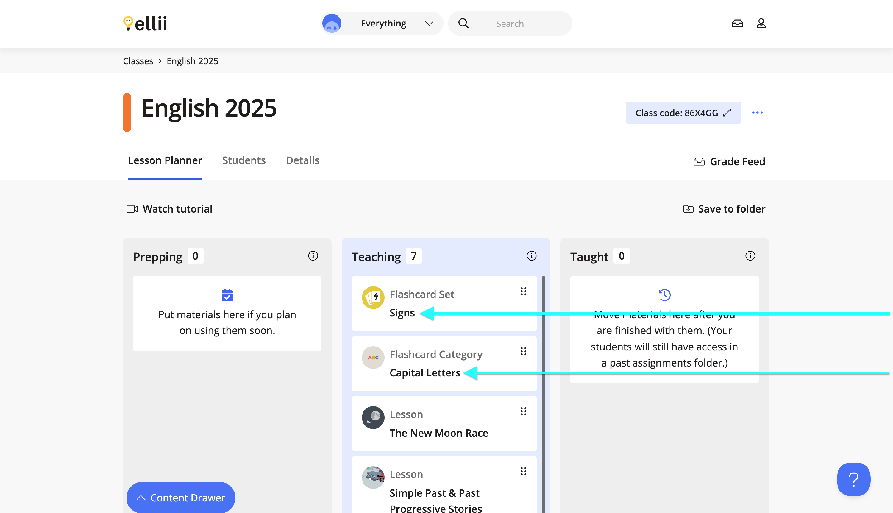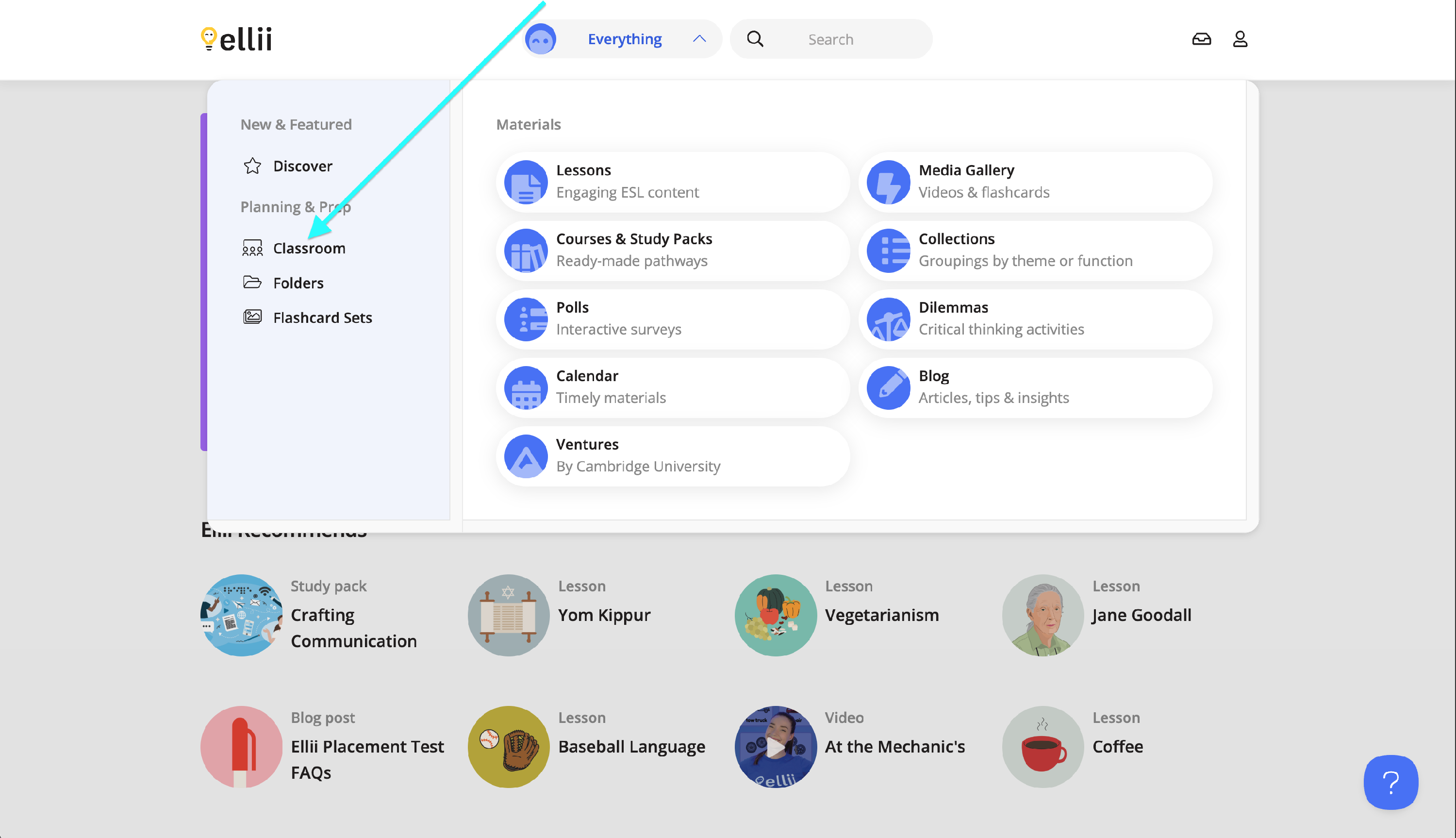 To view the flashcards added to your class, click on the Everything menu and select Classroom.