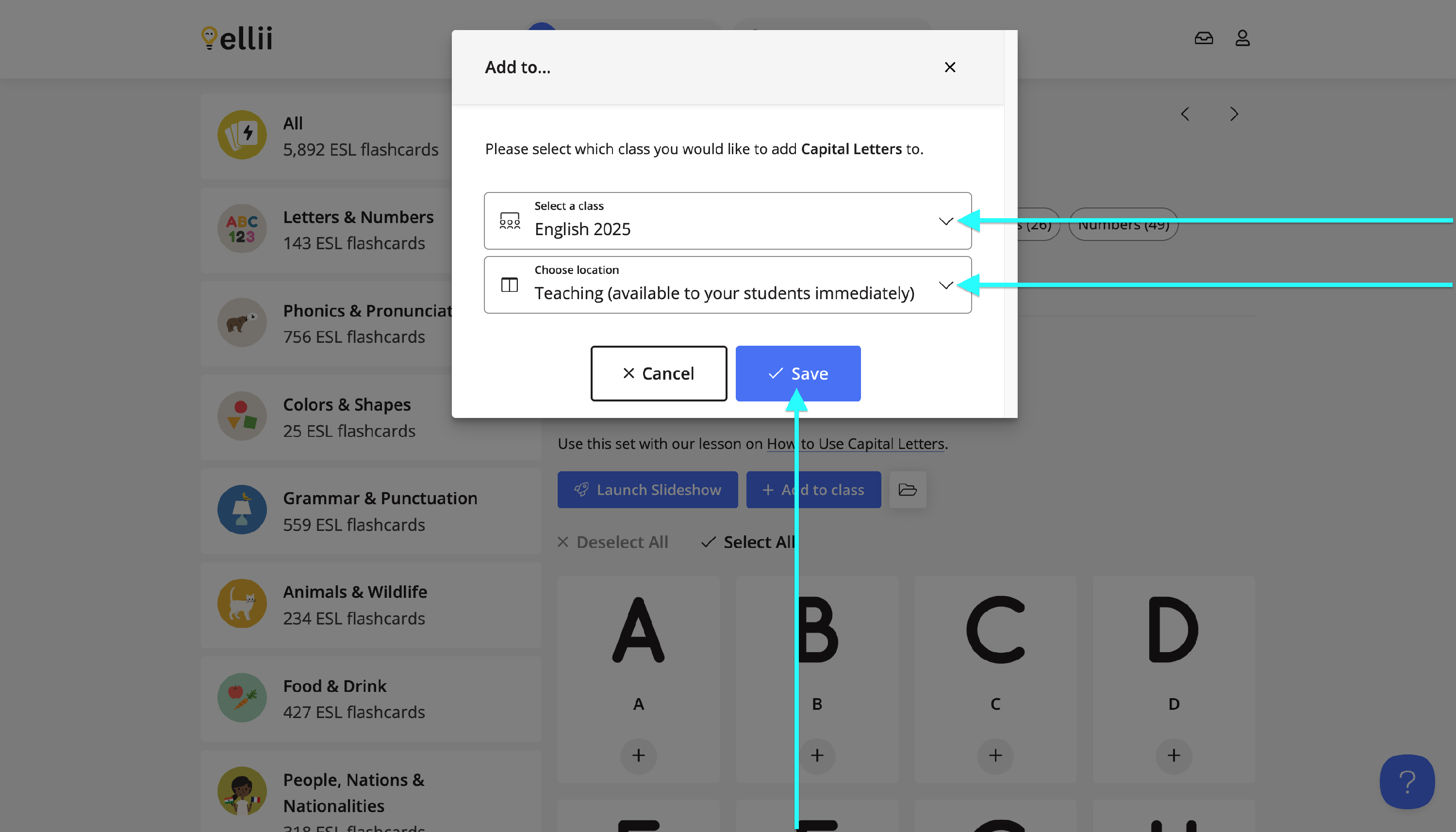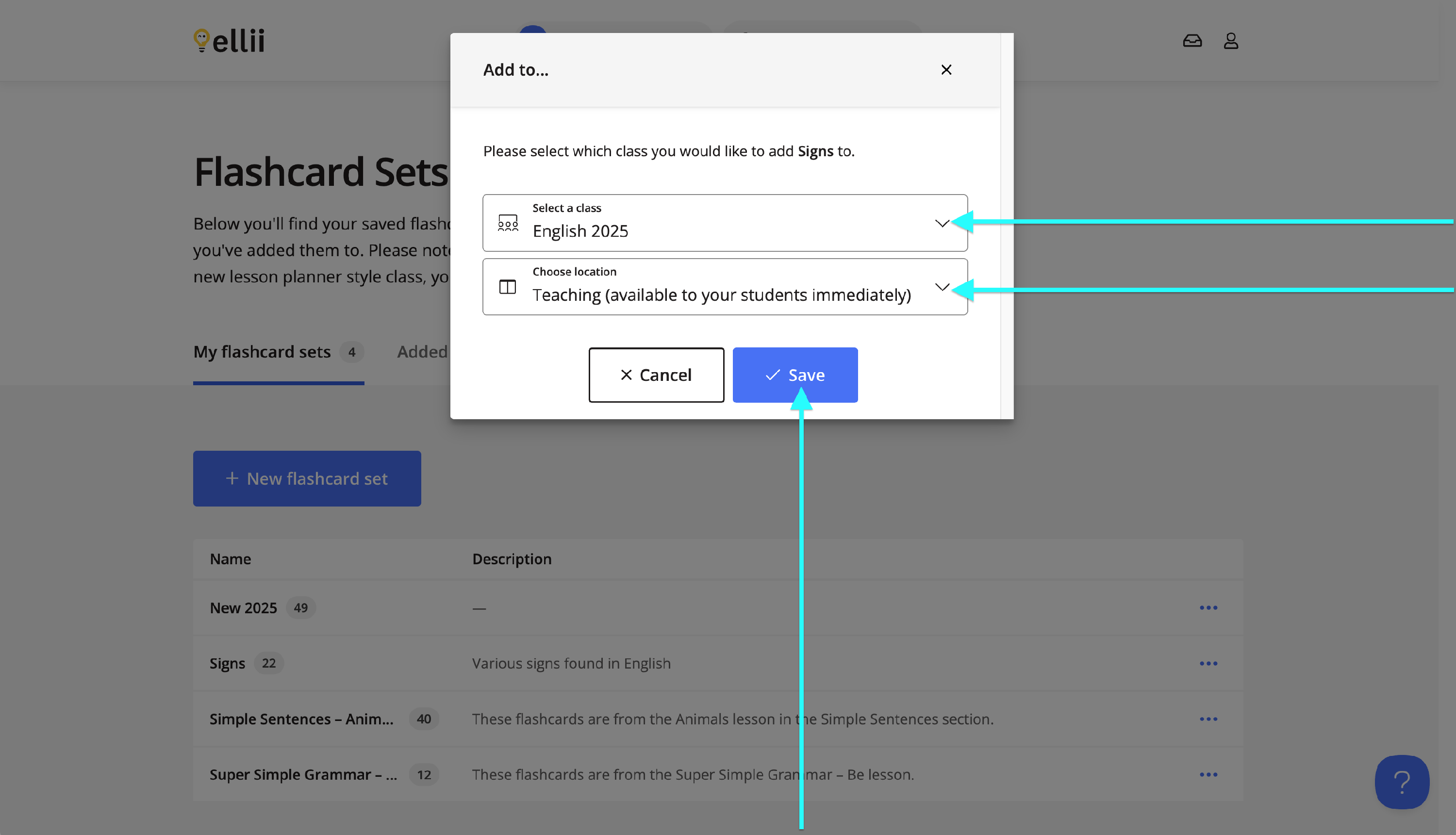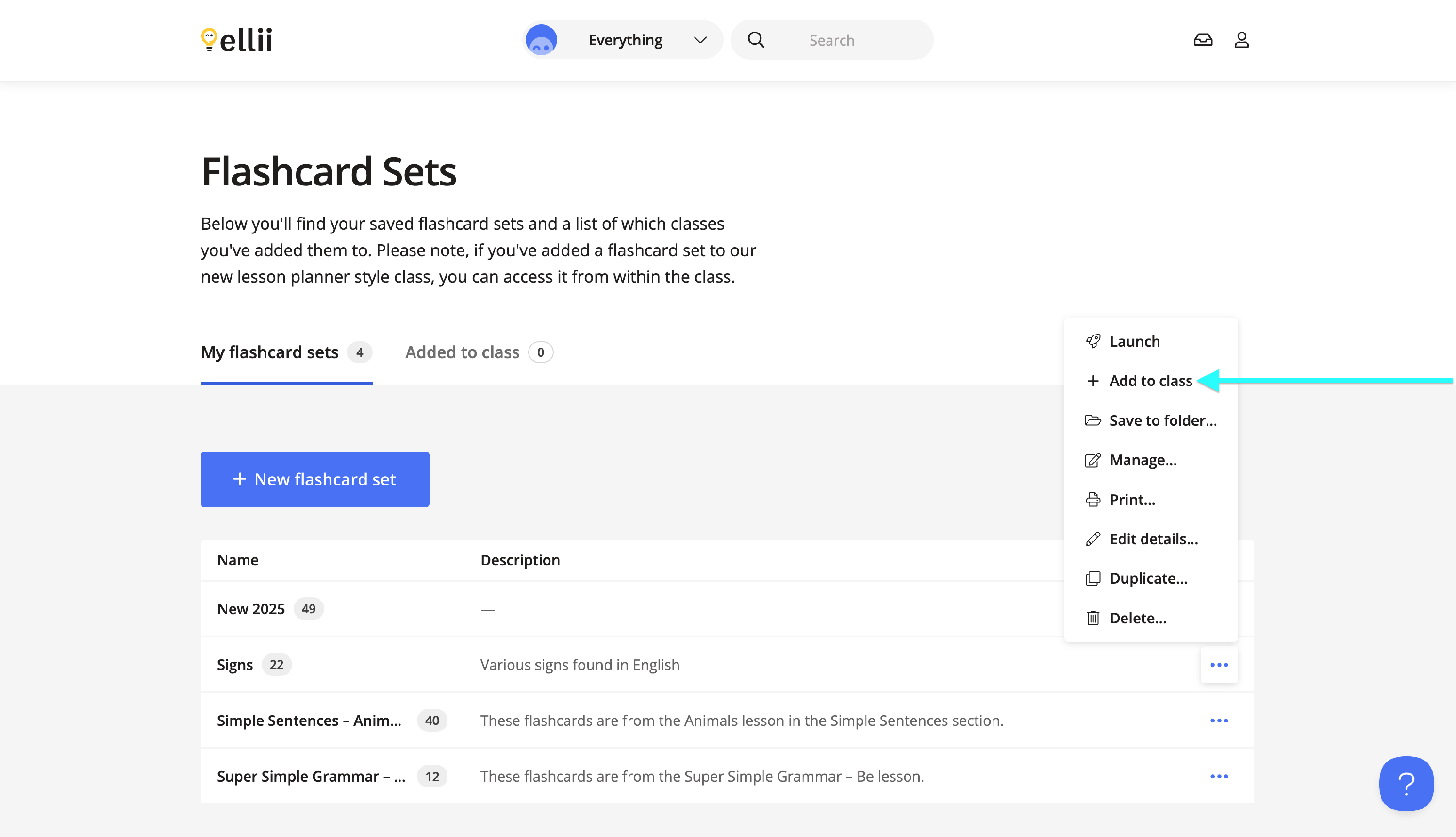 Teachers can share flashcards with their students by adding the flashcards to a class. Find out how by following the steps below.