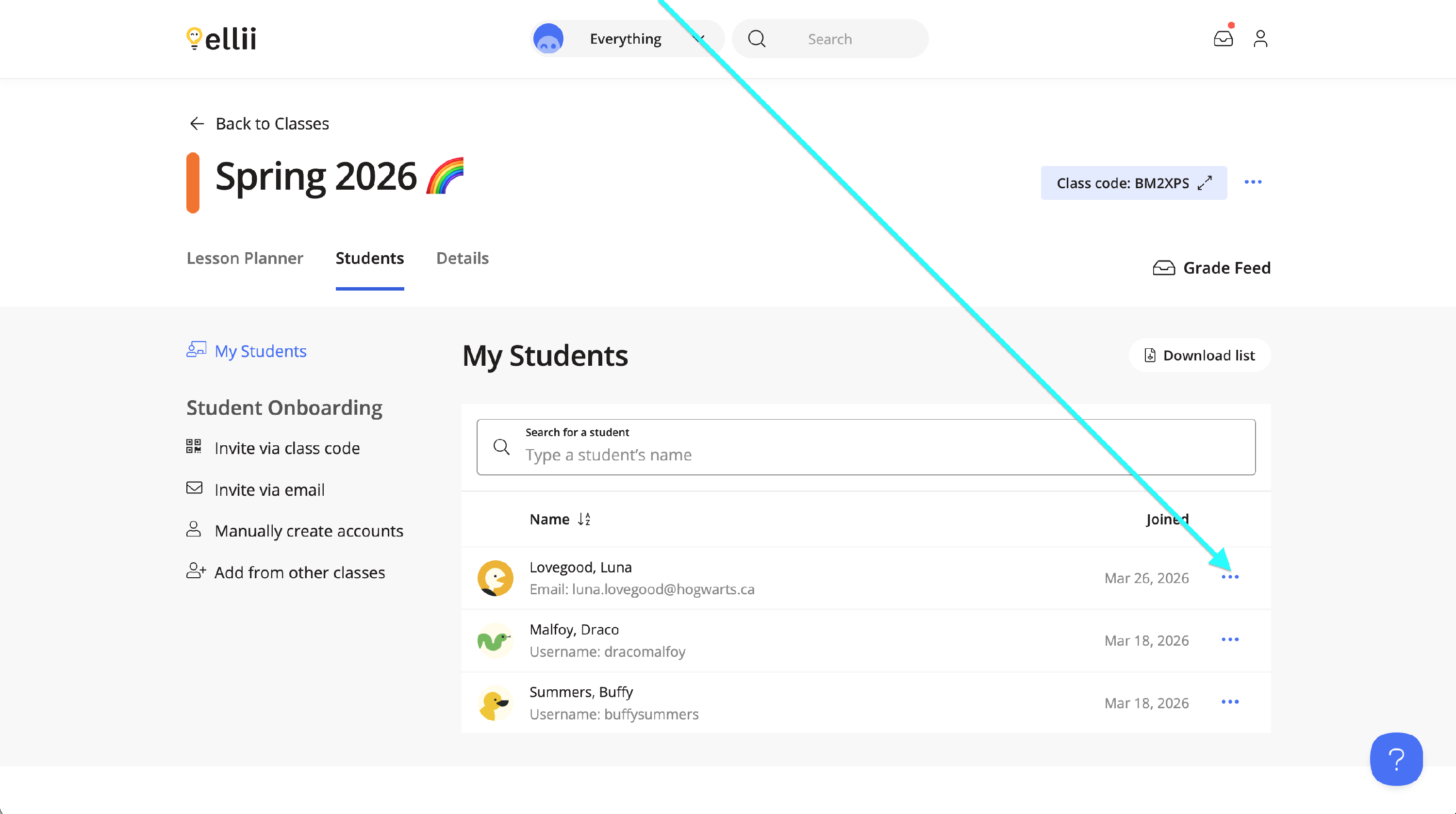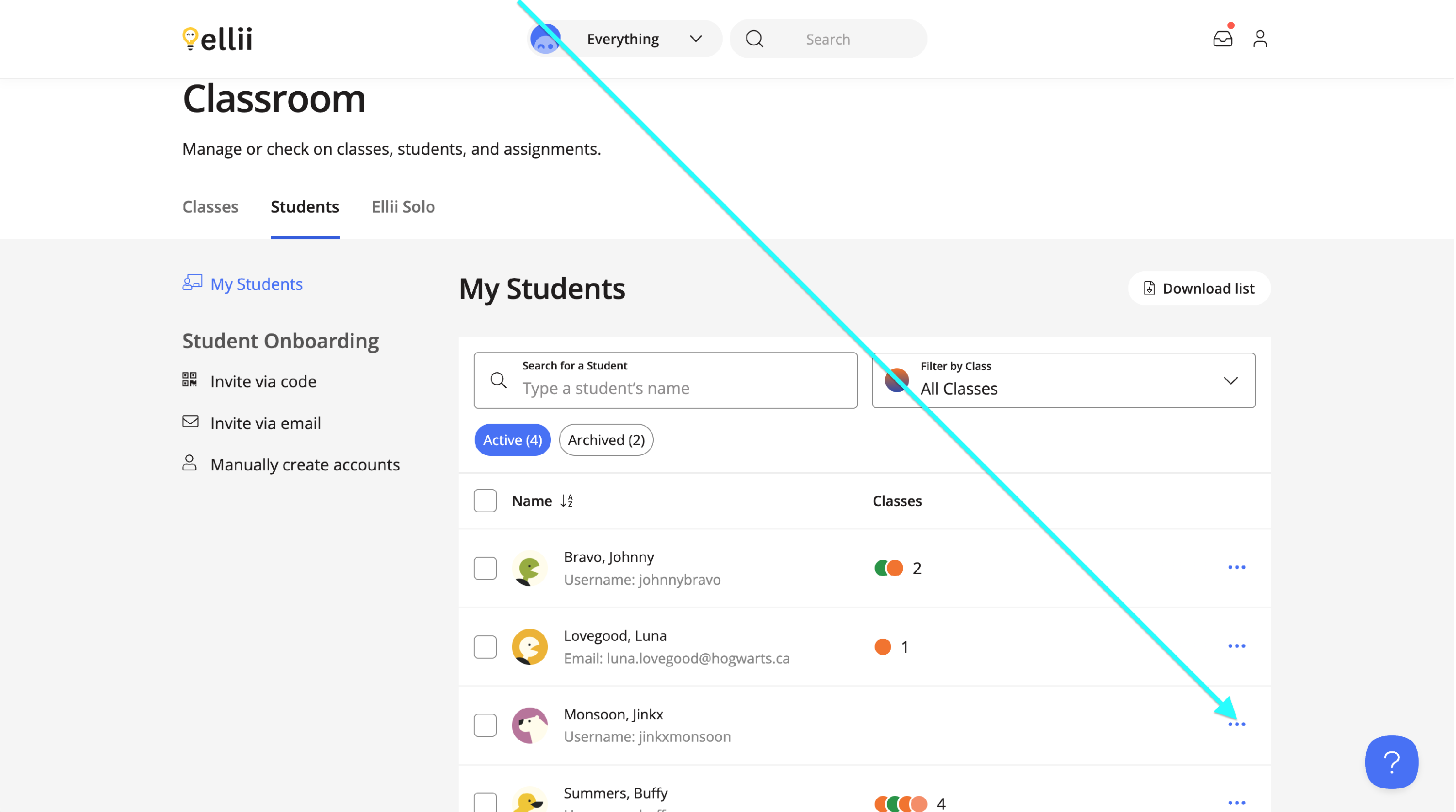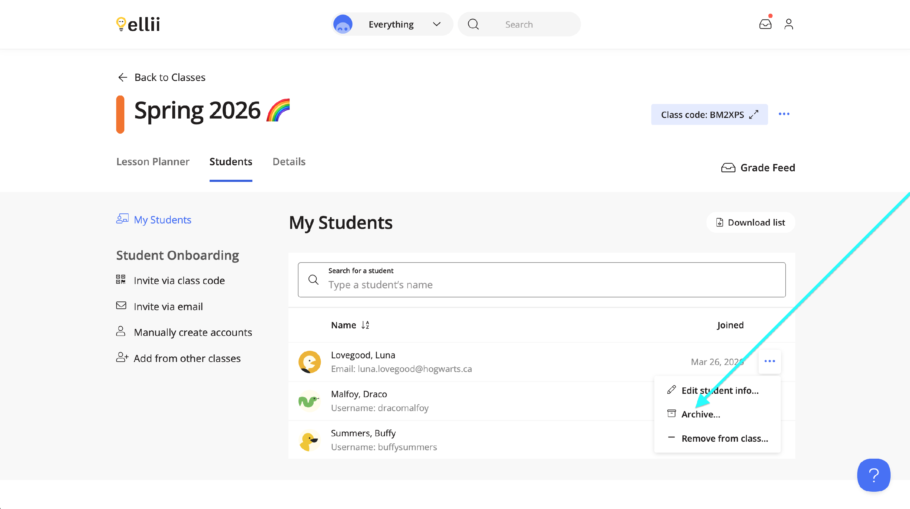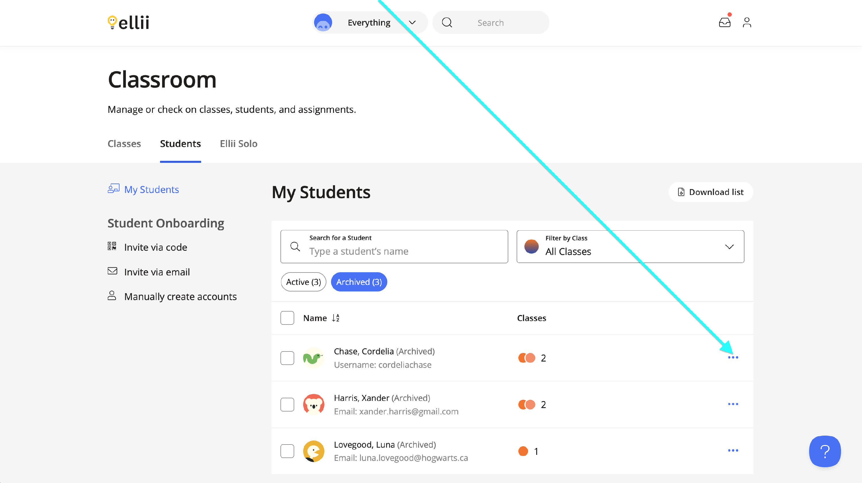 Click on the More Options (...) menu by the student's name you would like to archive.