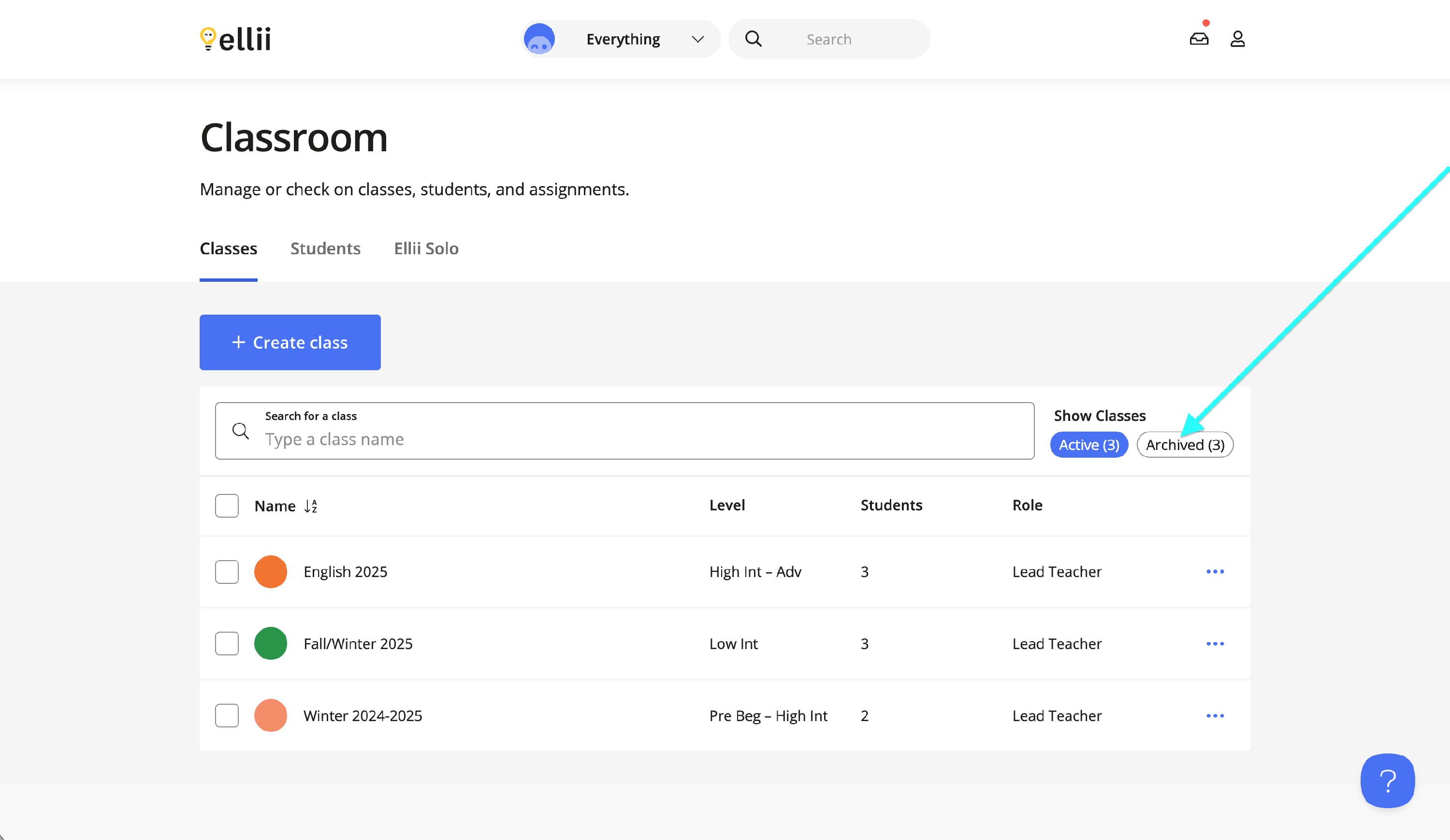 Follow the steps below to find out how to archive or delete classes no longer in use or needed from your account.