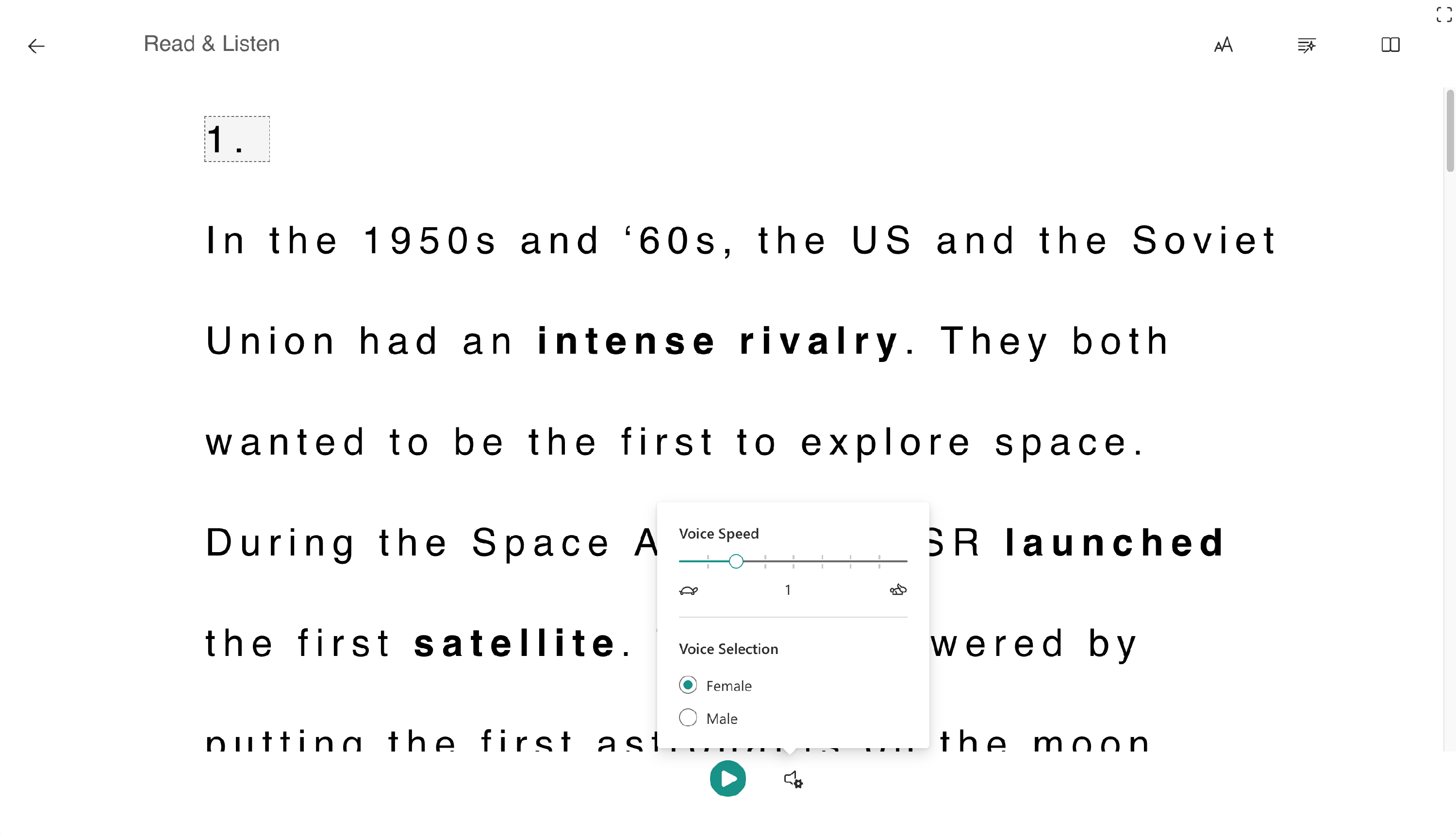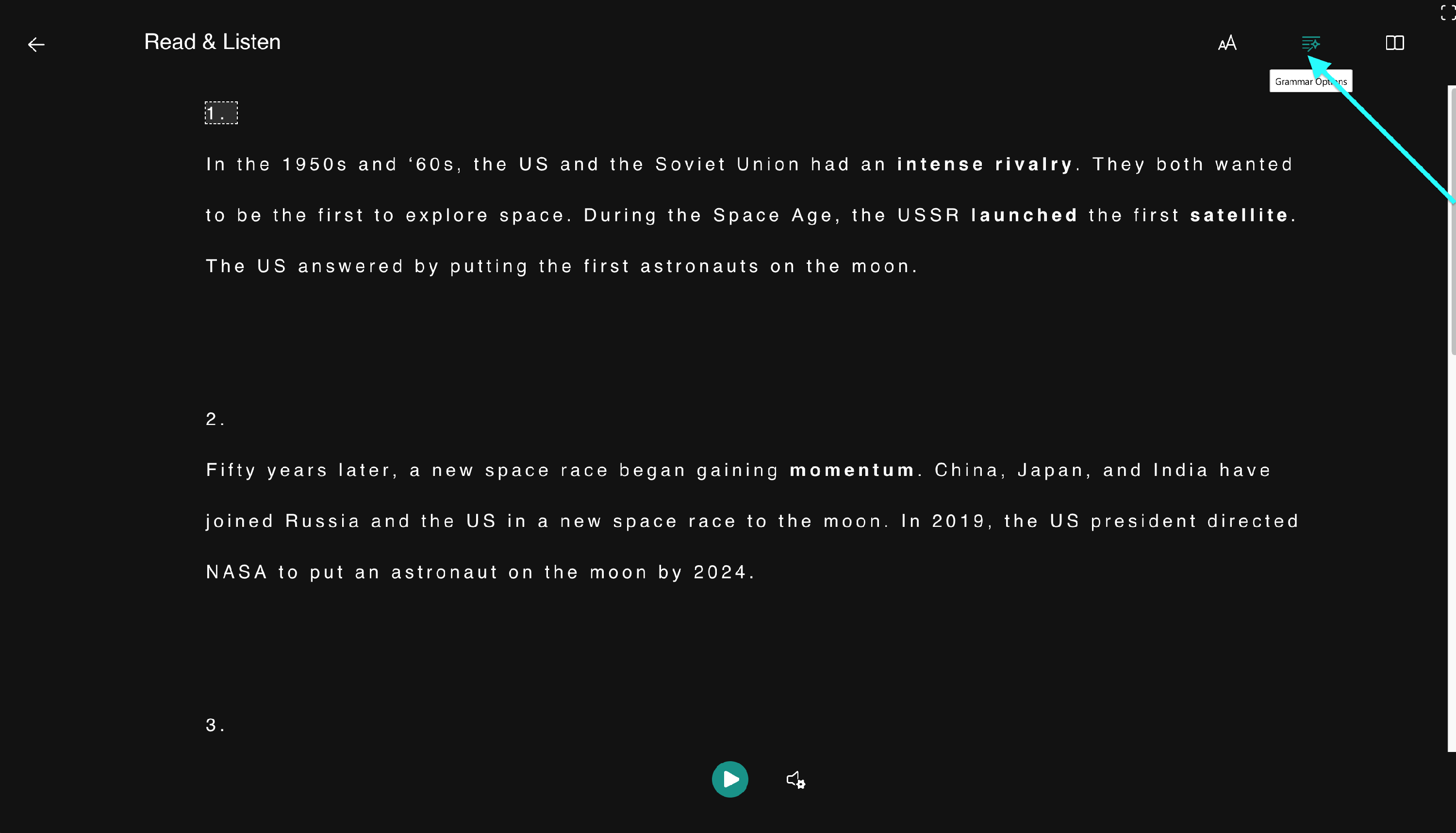 Clicking the Play button will start the audio for the text.