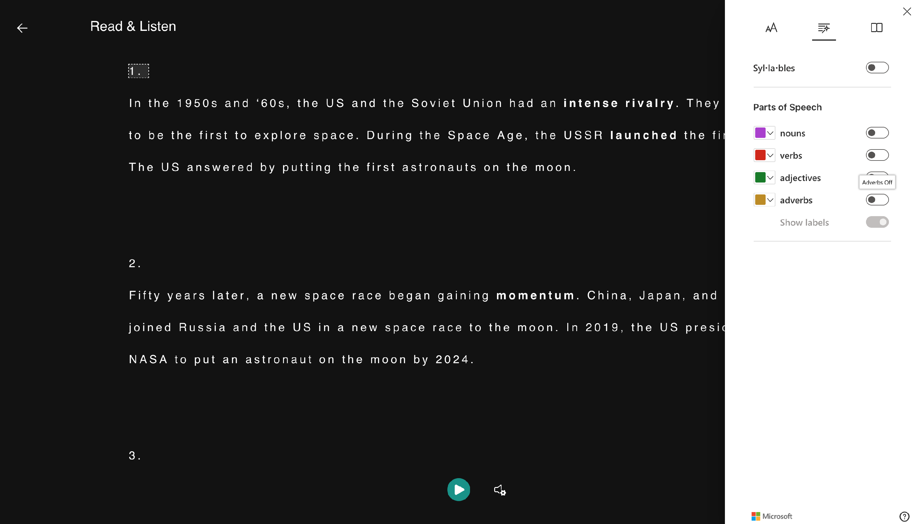 Click the Immersive Reader button to start using the tool.