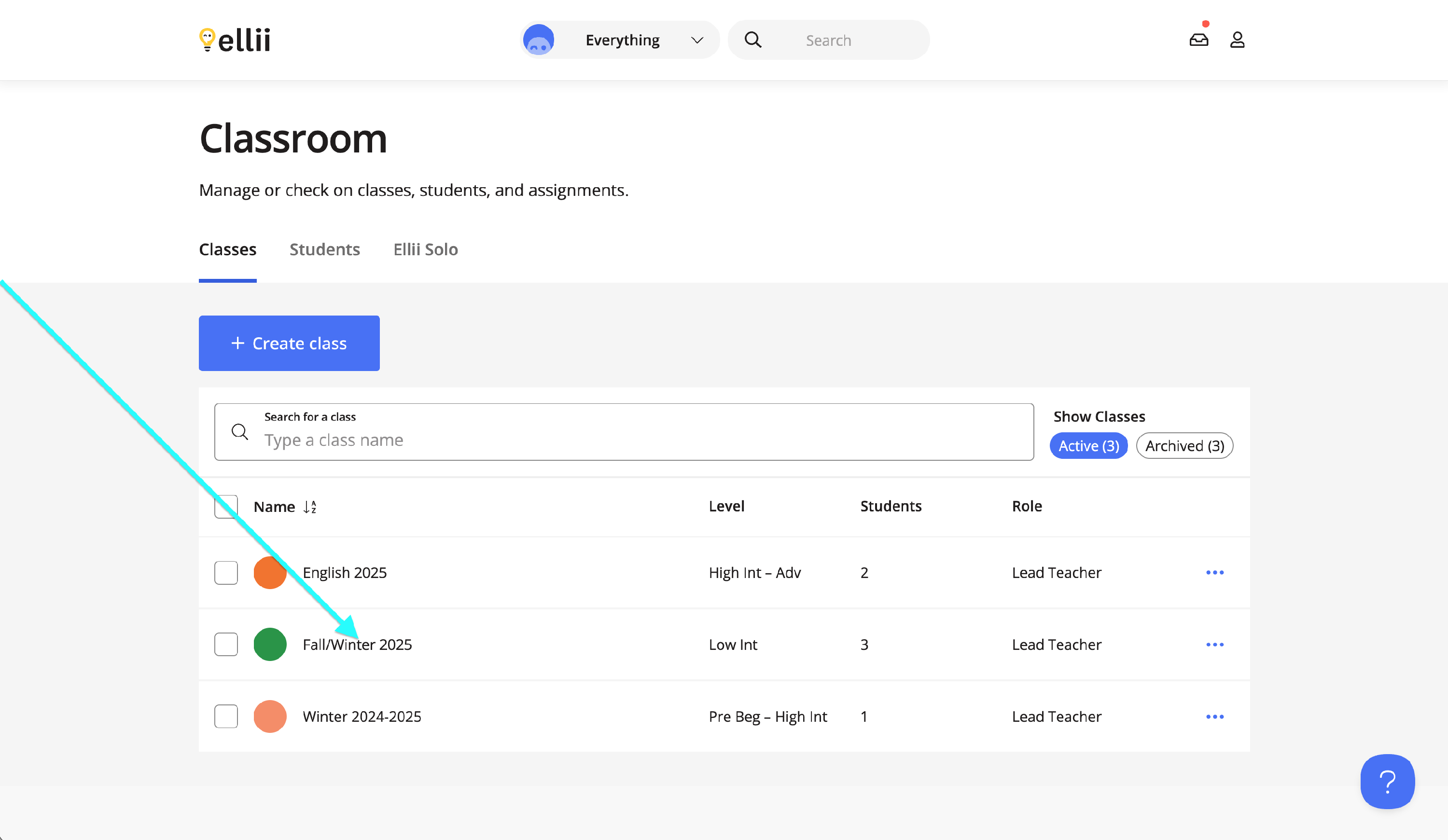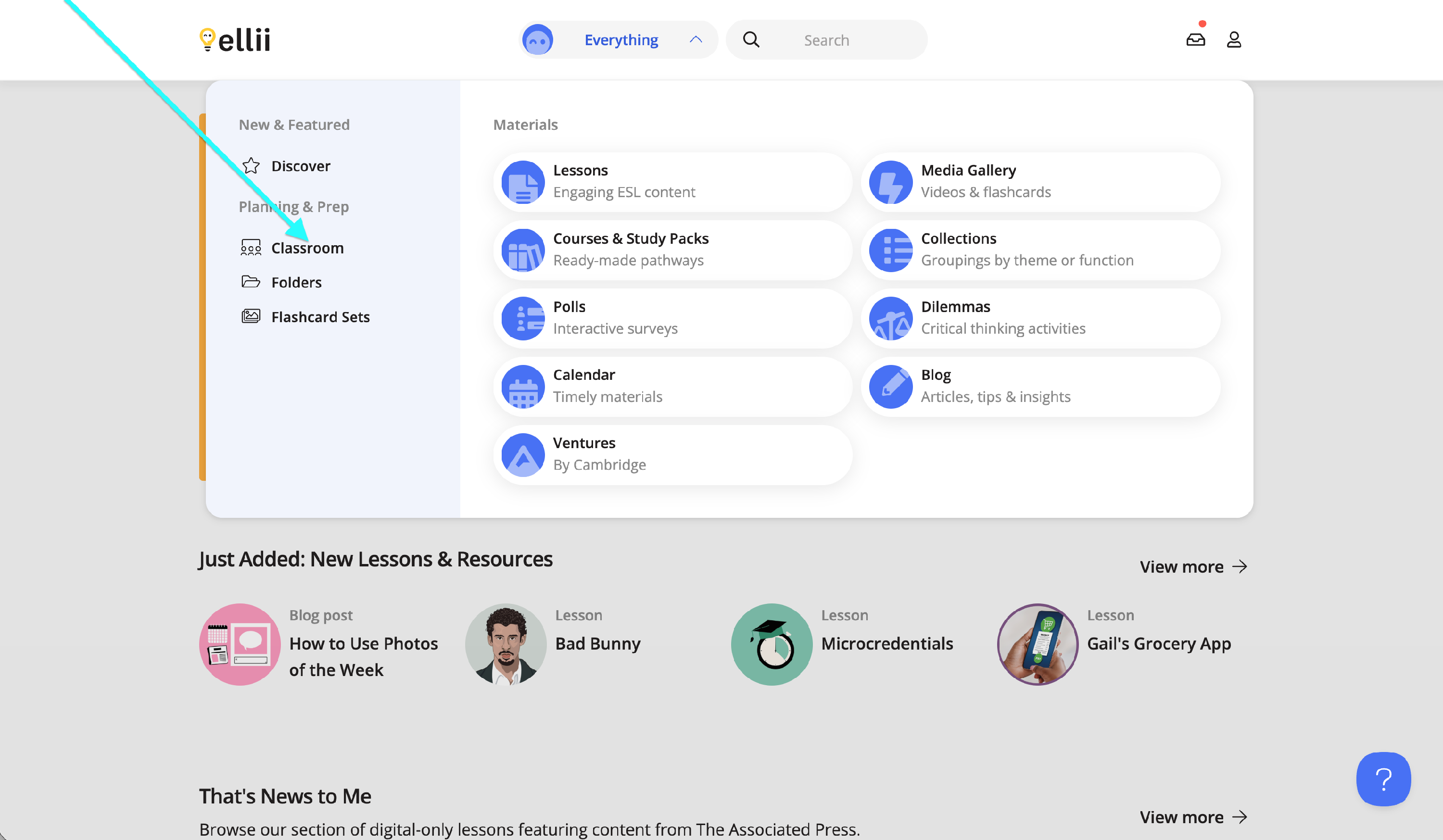 You can also access the Grade Feed by clicking on Classroom and selecting Classes from the drop-down menu.