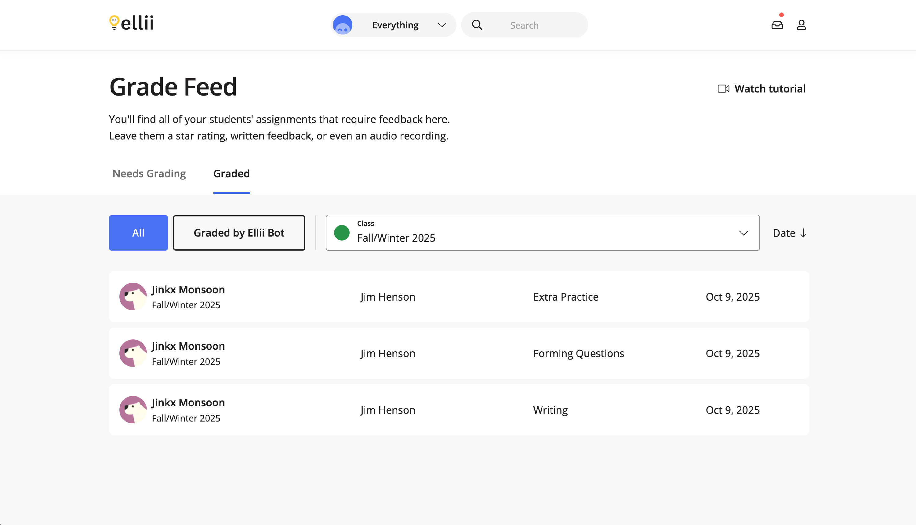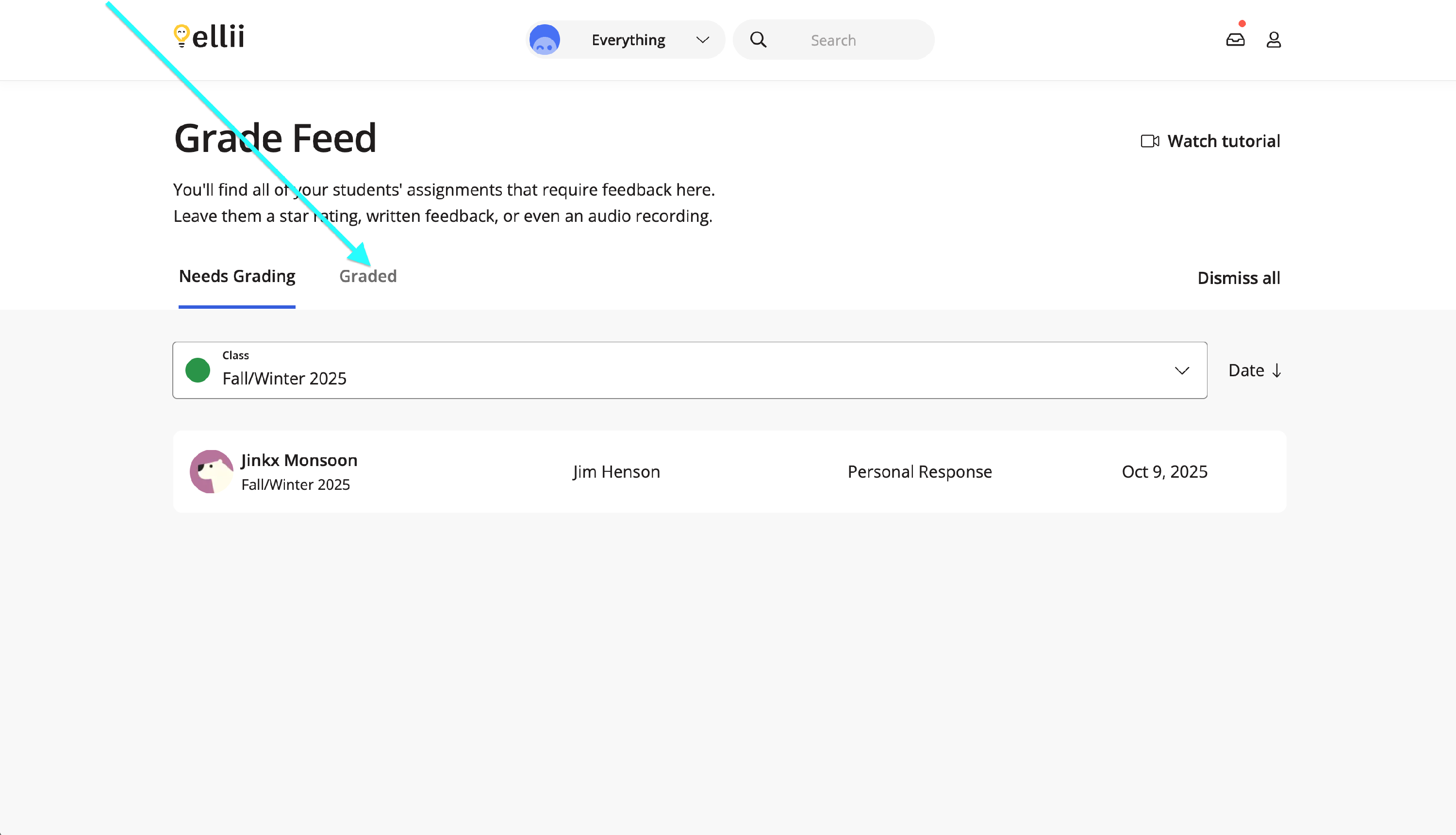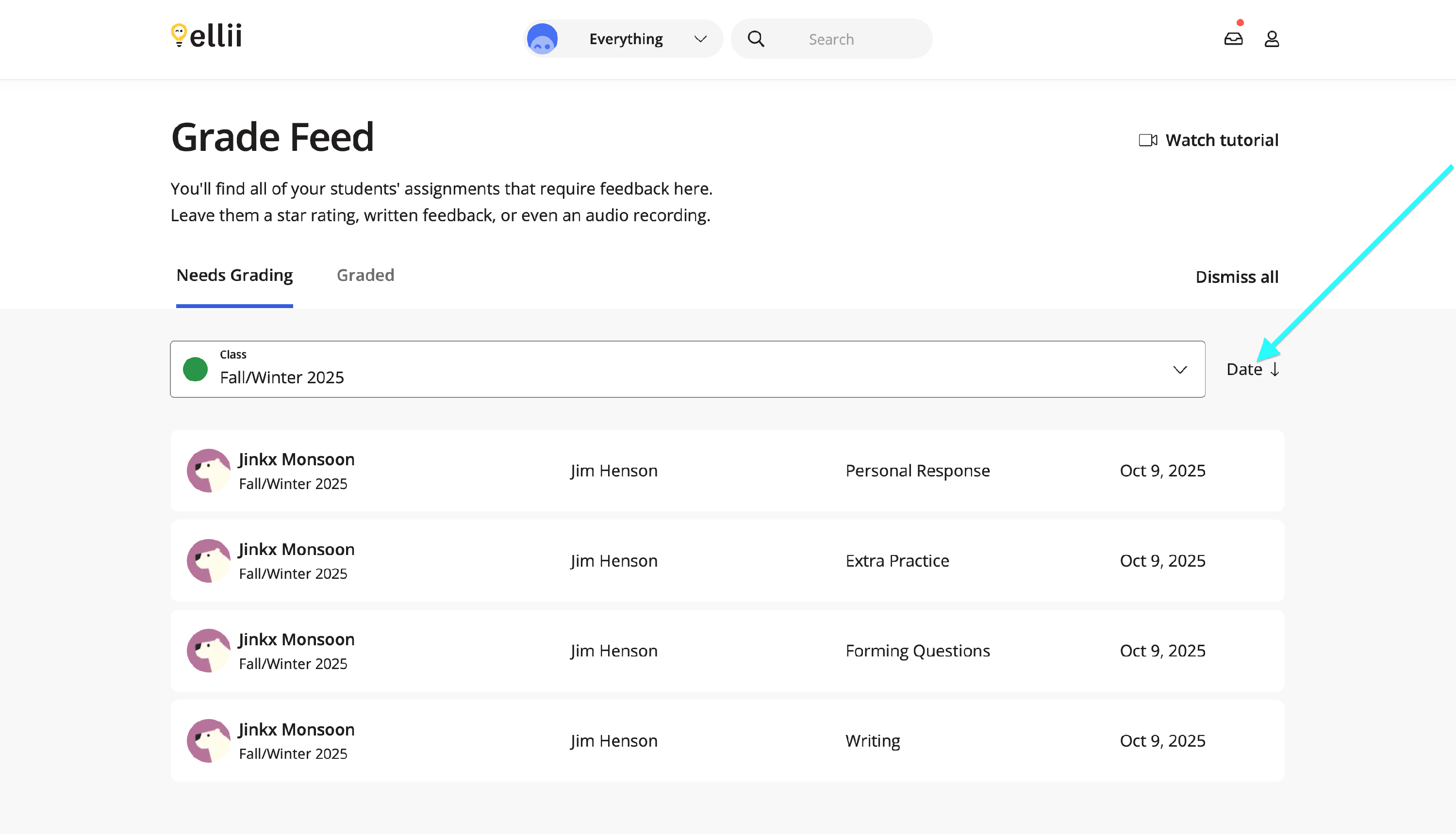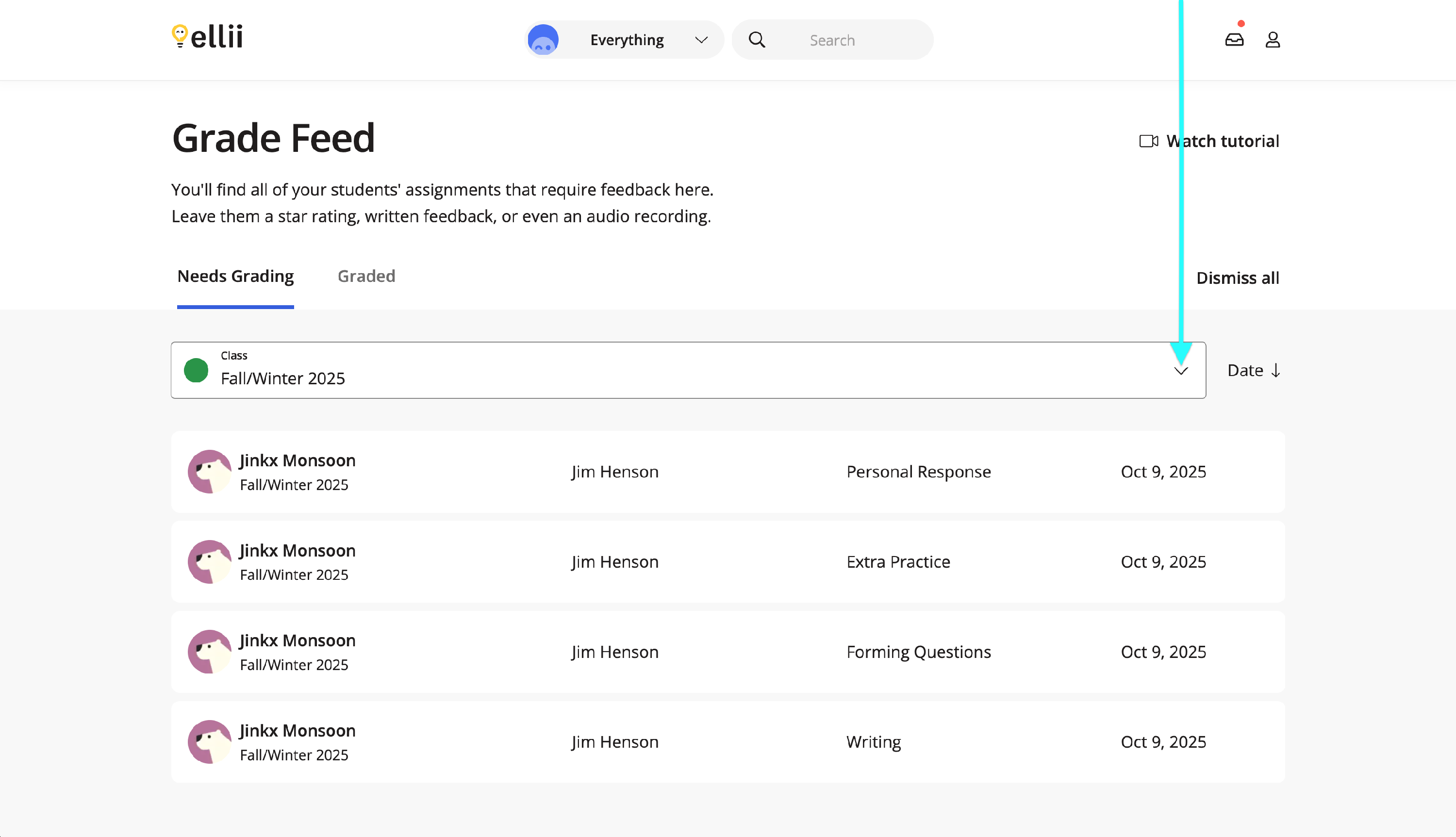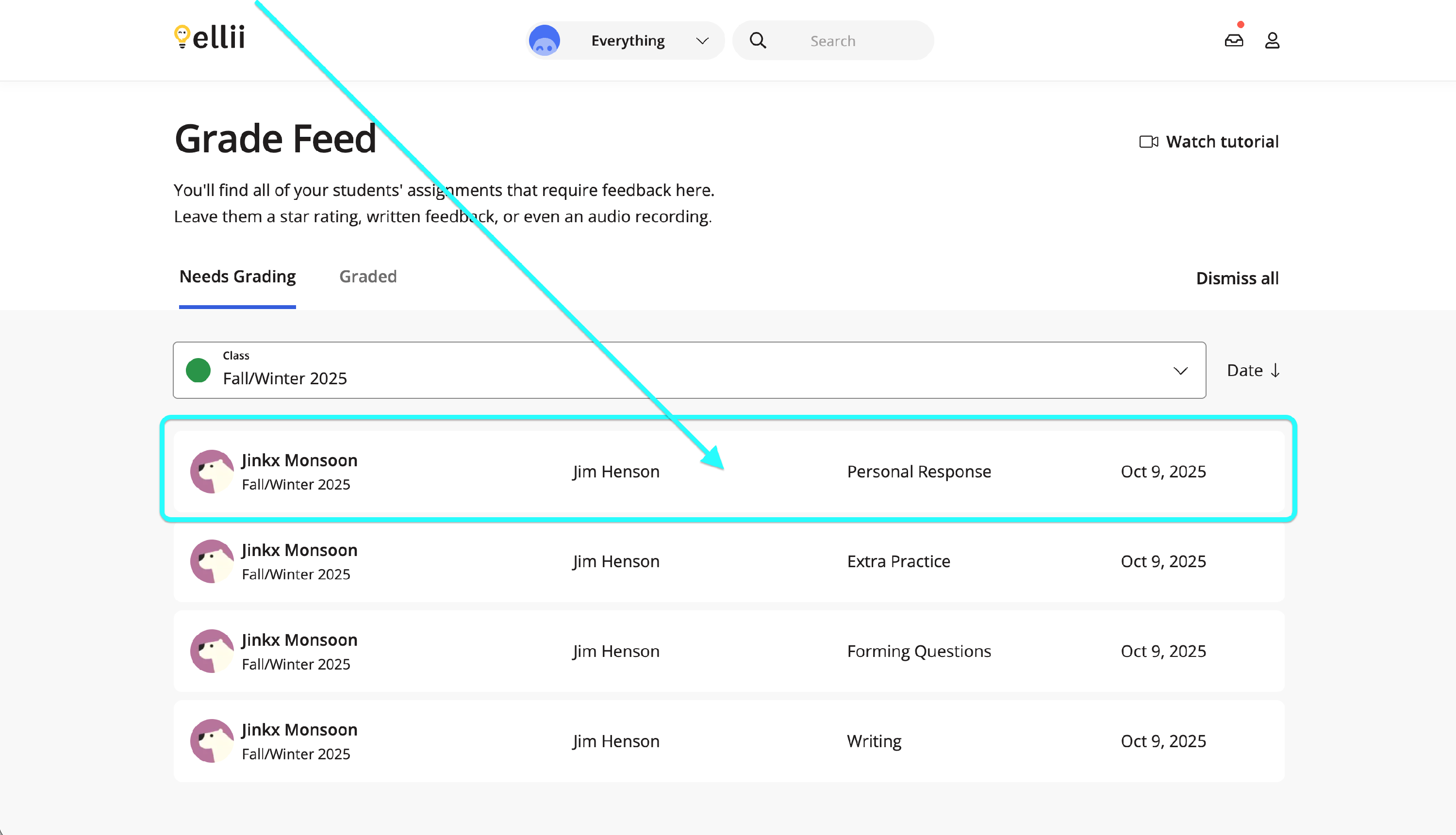 The Grade Feed is a feature that allows teachers to view student responses and give feedback at a glance on Ellii. Follow the steps below to start using the Grade Feed.