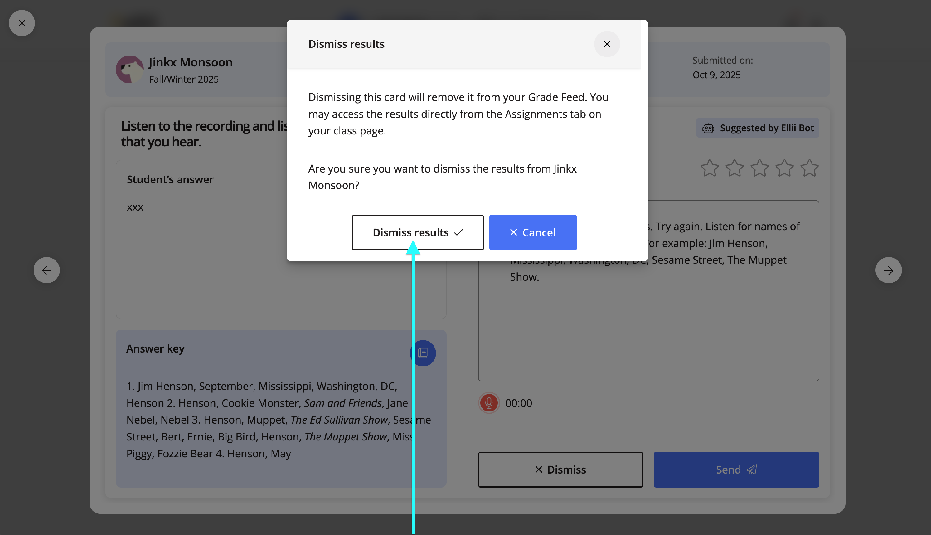 Clicking Dismiss will remove the responses from your Grade Feed. You can still view the responses directly from your class' Lesson Planner.
