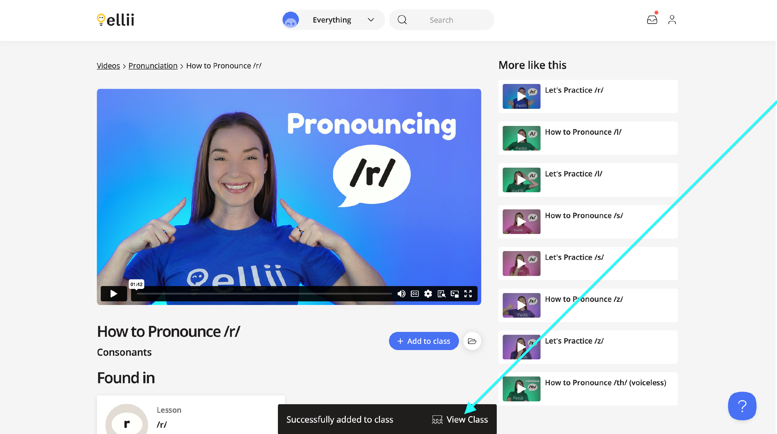 A popup will appear at the bottom of the page notifying you that the video was successfully added to the class. Click View Class to go directly to the class the video was added to.