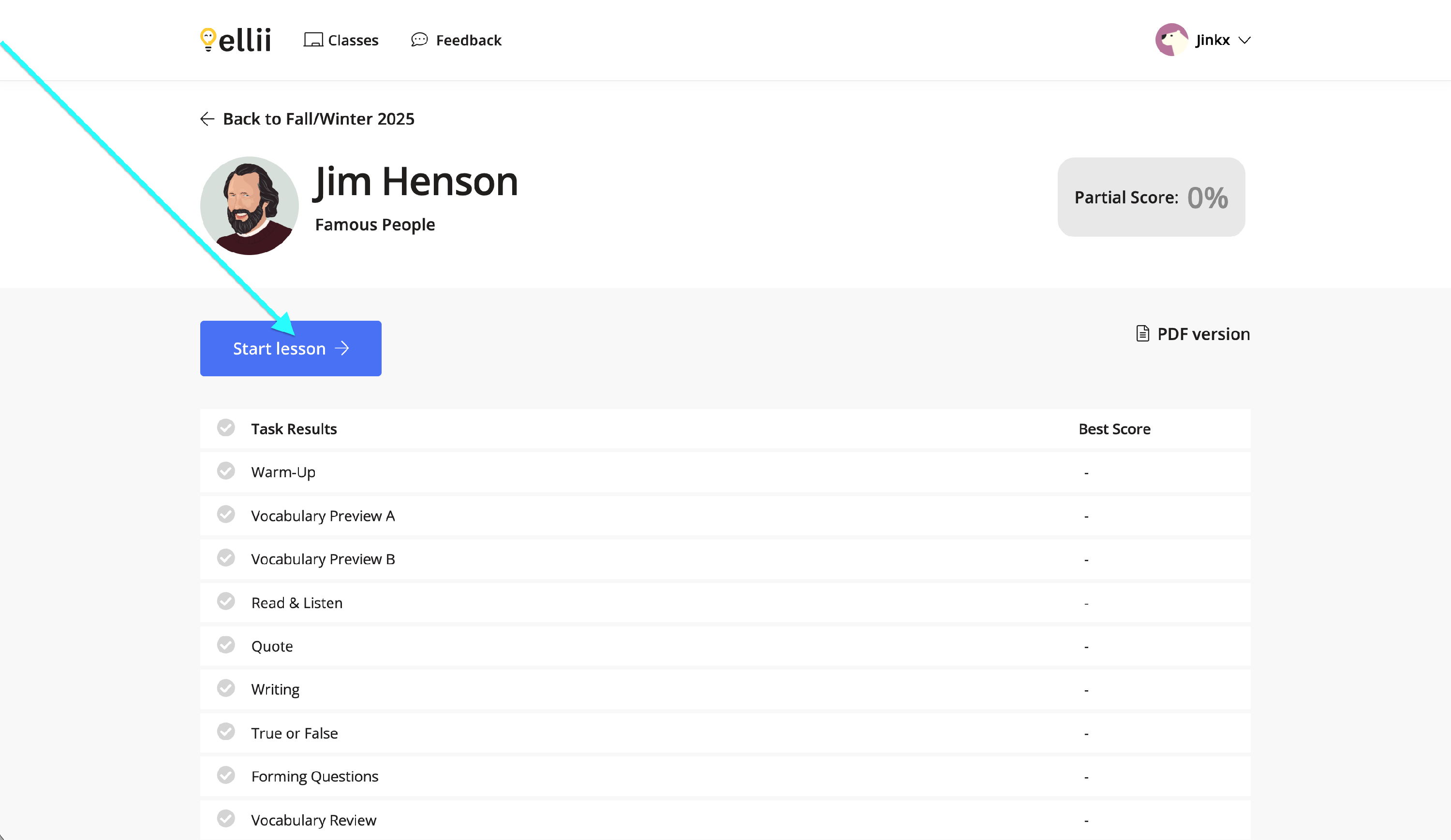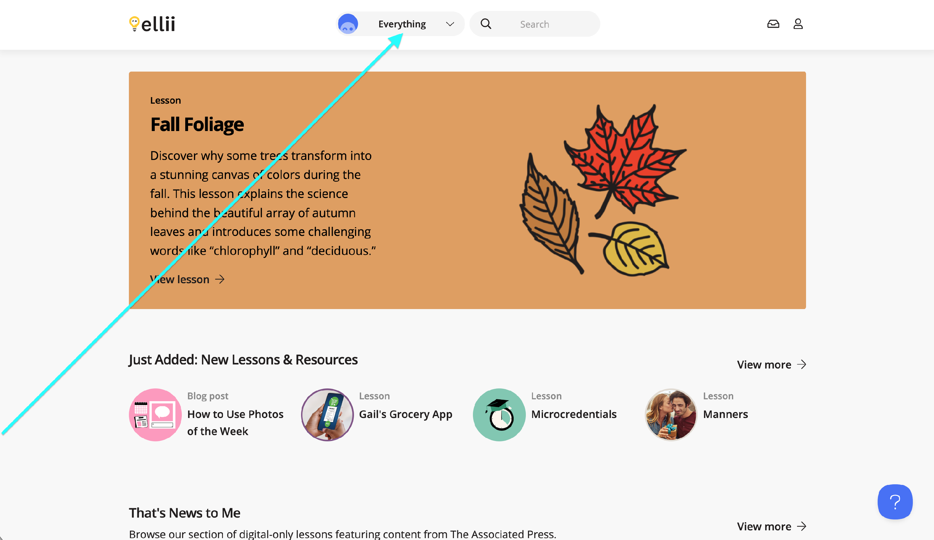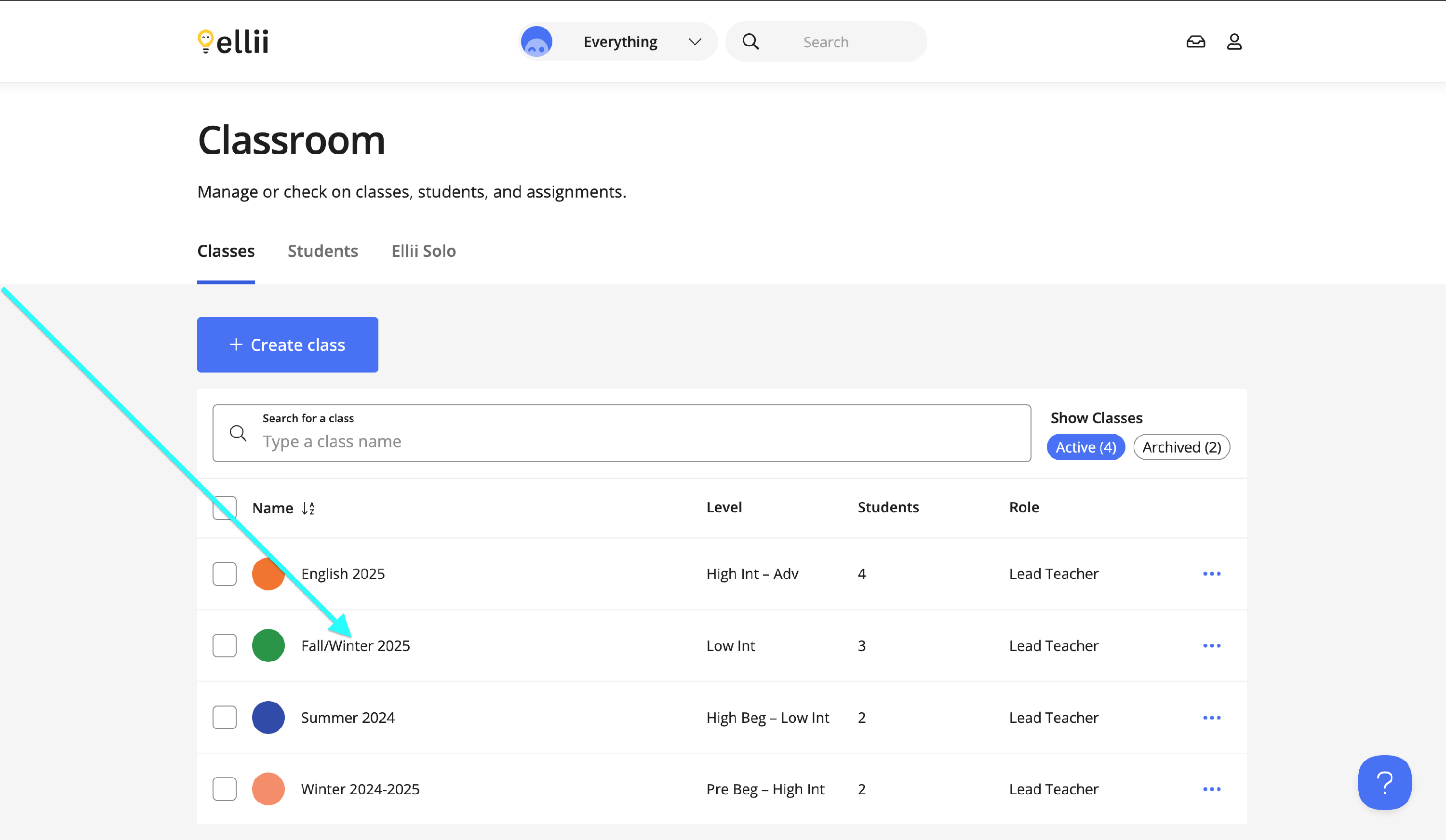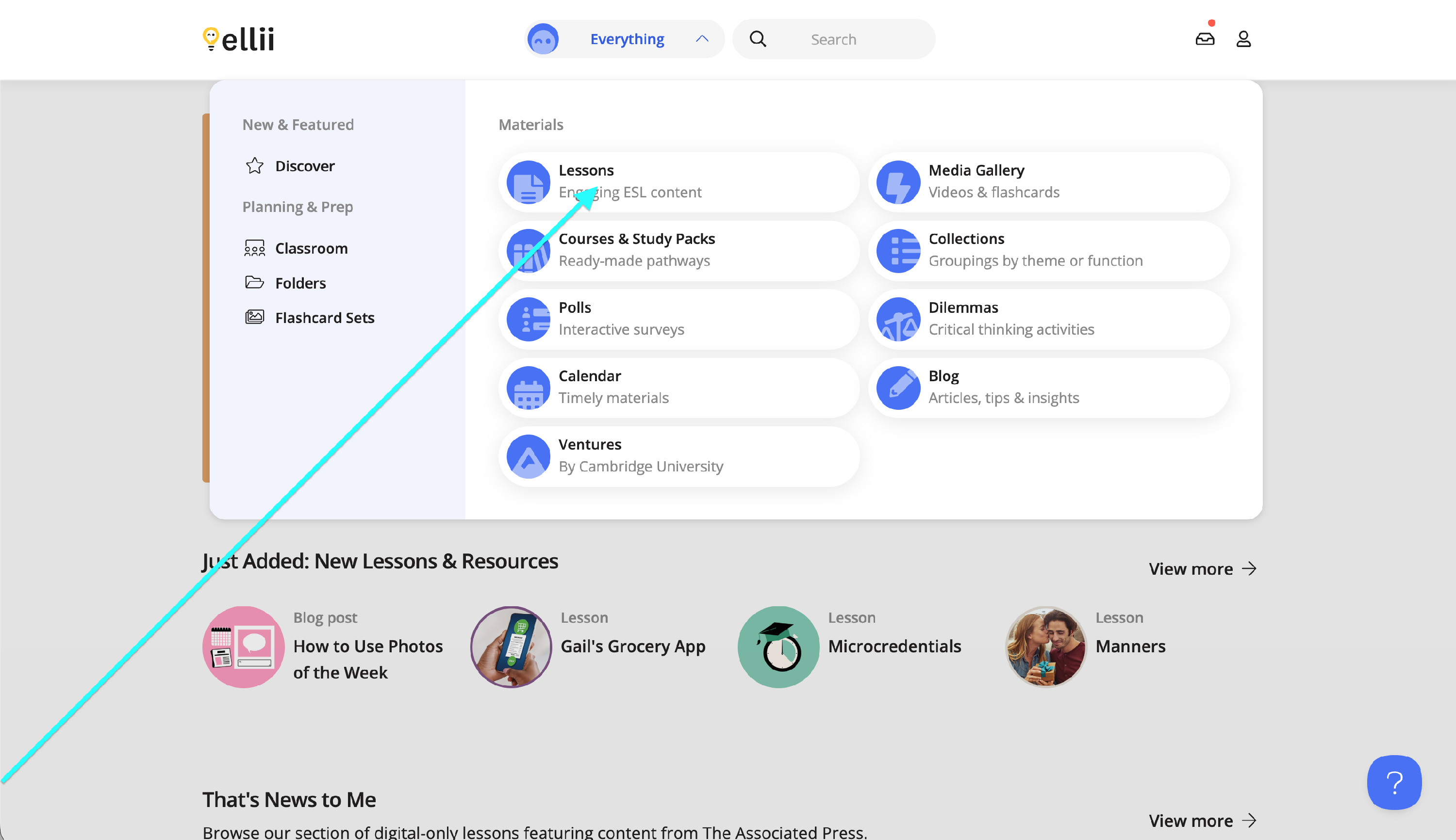 To view the lesson(s) that your student(s) picked, click on the Everything menu and select Classroom.