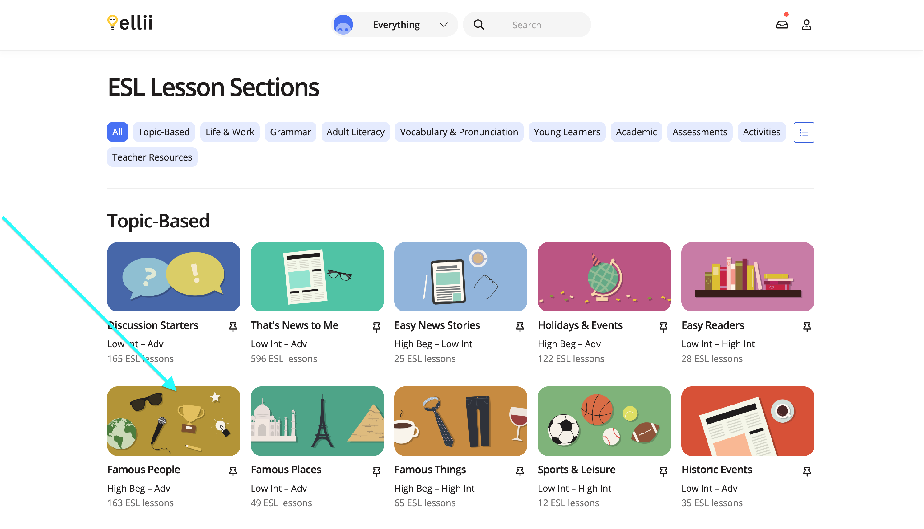 On the ESL Lesson Sections page, you will click on a section that you would like to include in Student Picks.