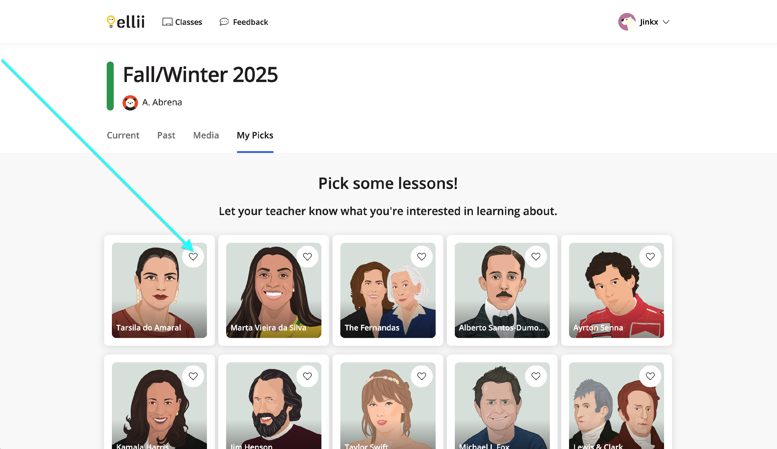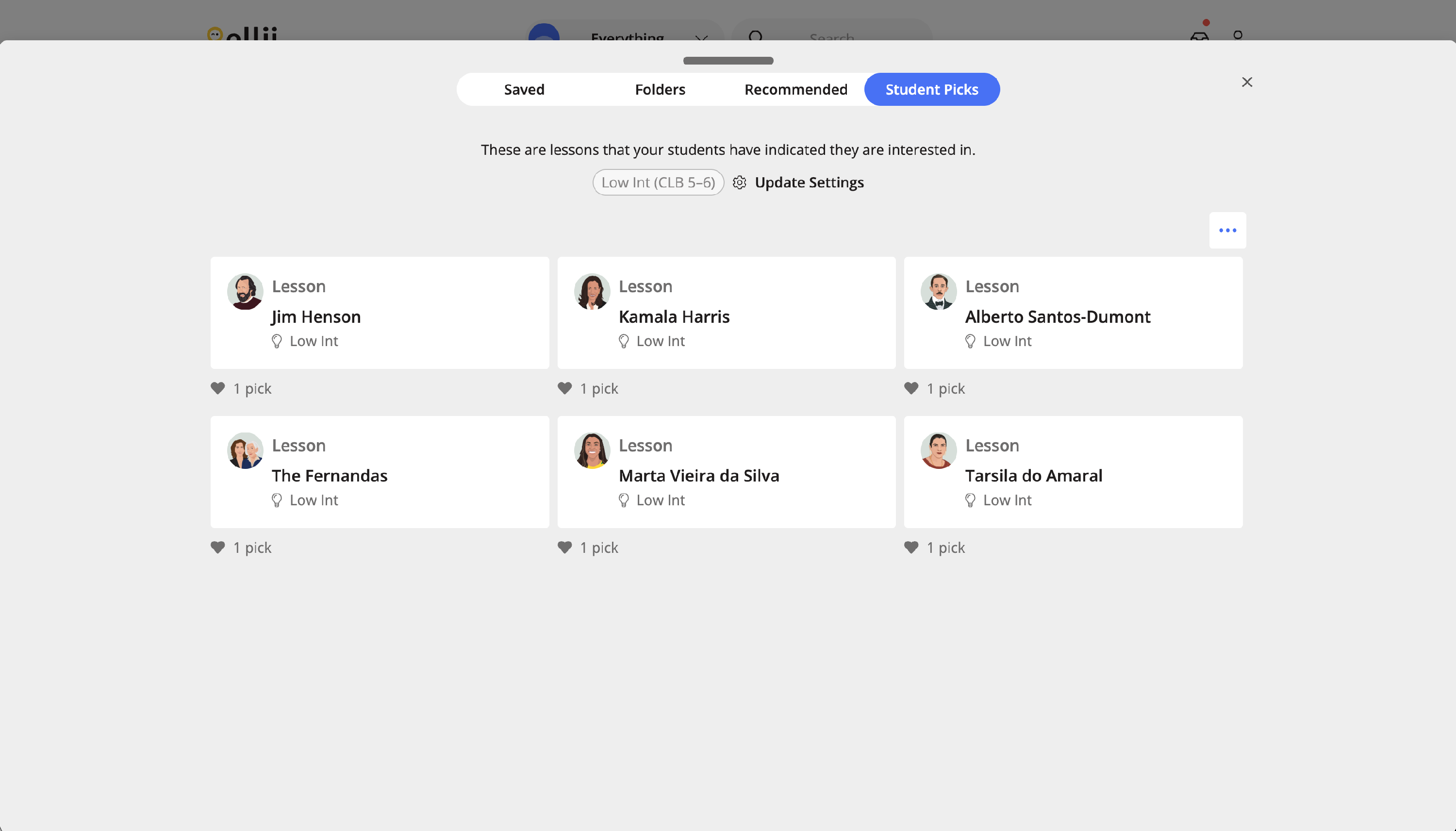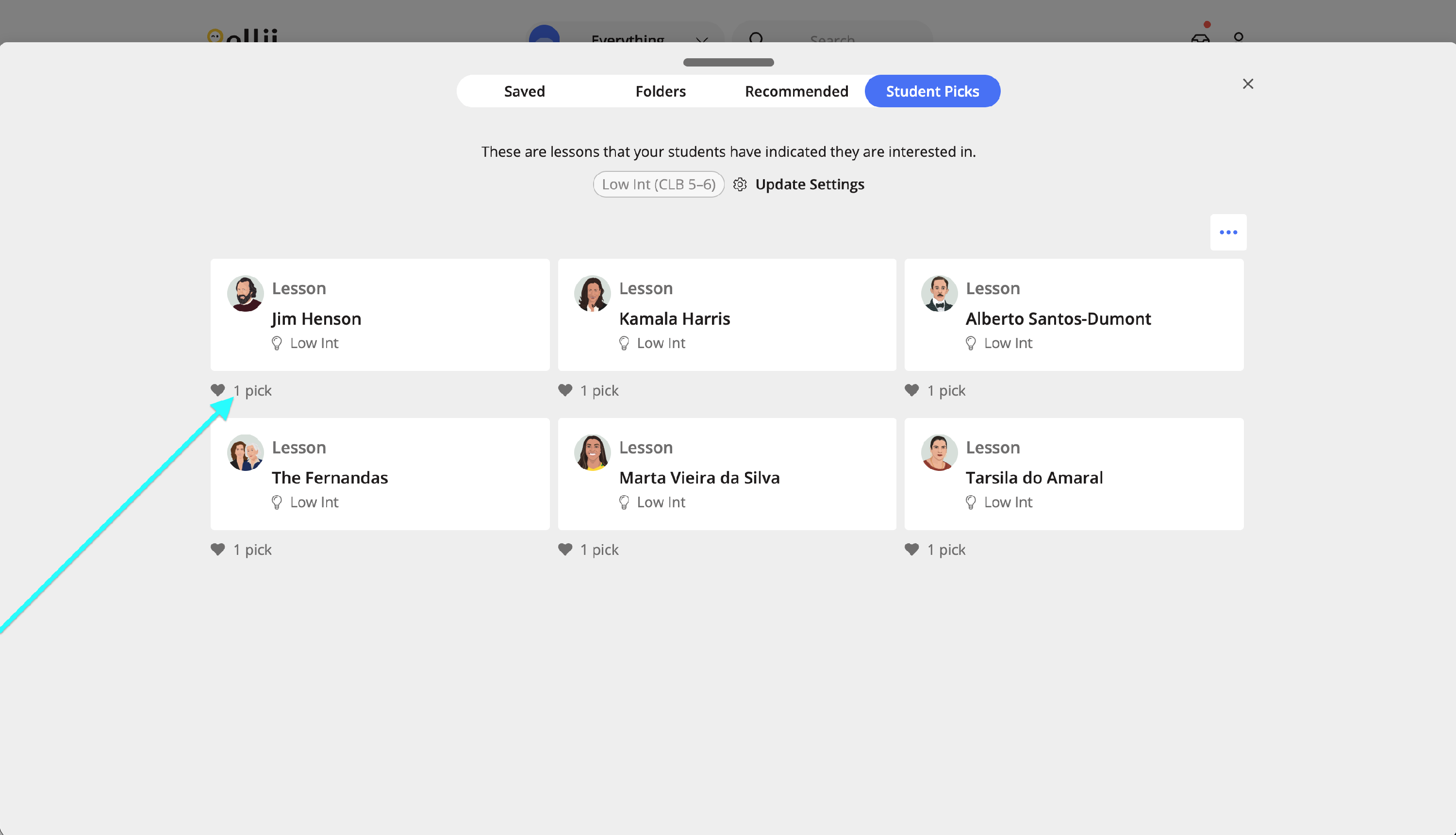 Click on Student Picks to view the lesson(s) your student(s) are interested in learning about.