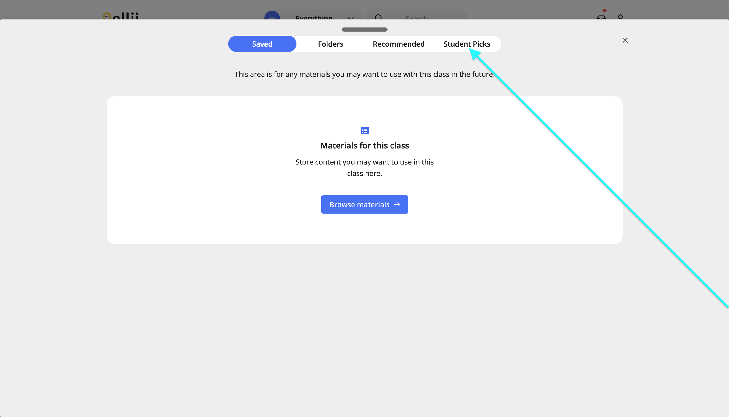 Click on the class that you included in Student Picks and navigate to the Content Drawer bar at the bottom of the page.