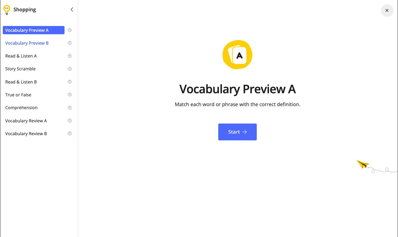 Time on task is tracked per task. We start the timer when the student hits the blue Start button.