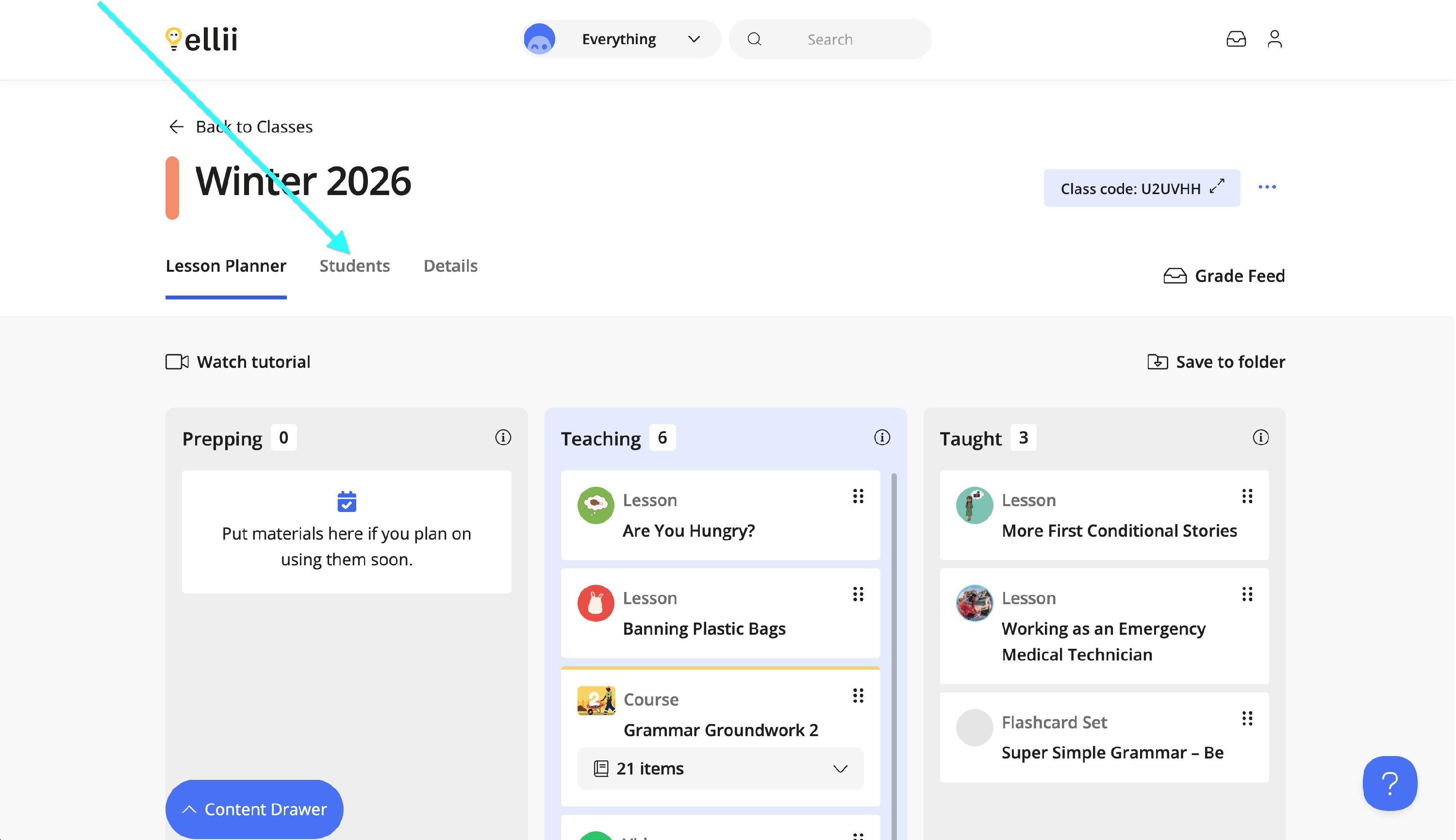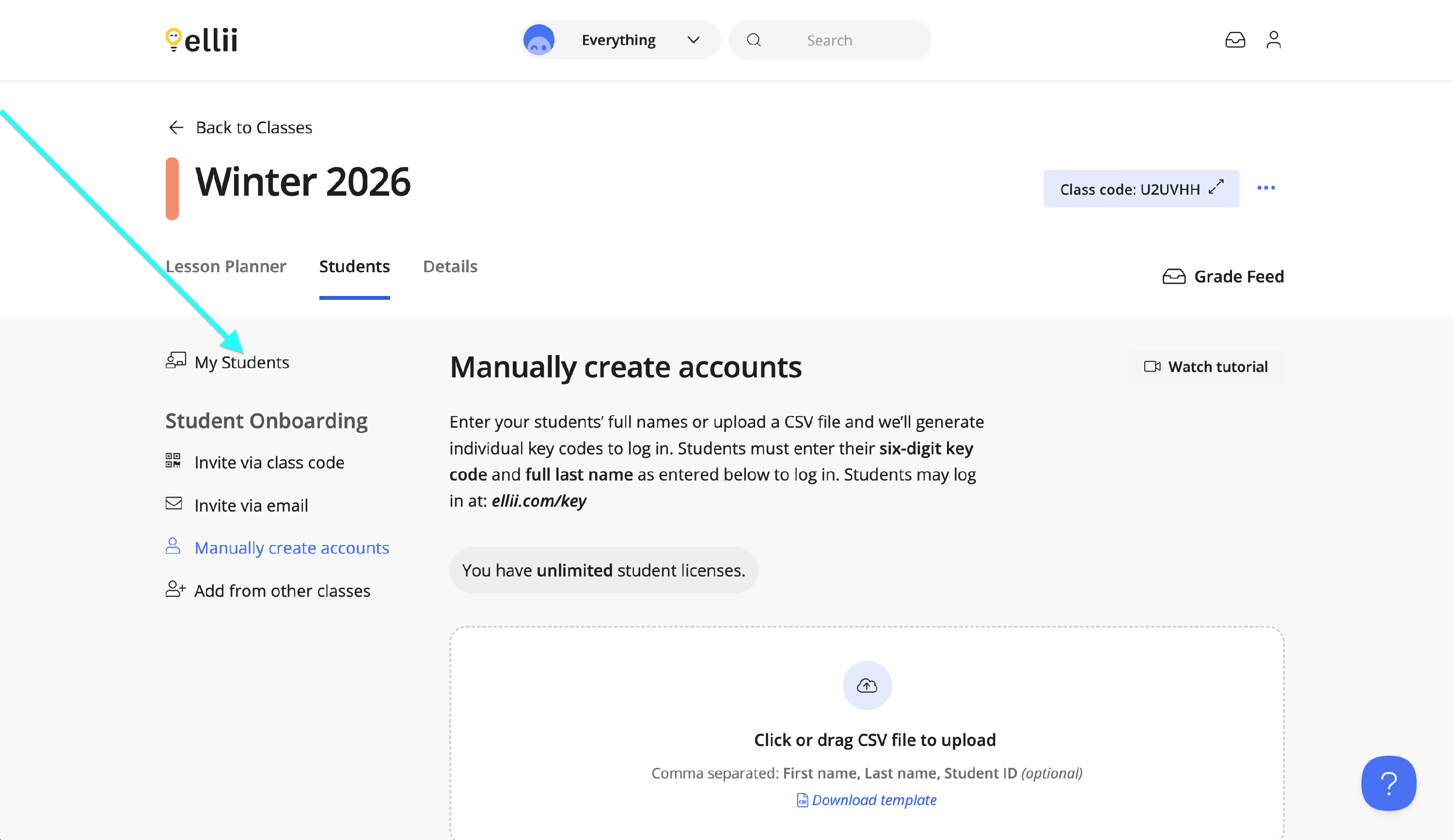 Once inside a class, click on the Students tab.