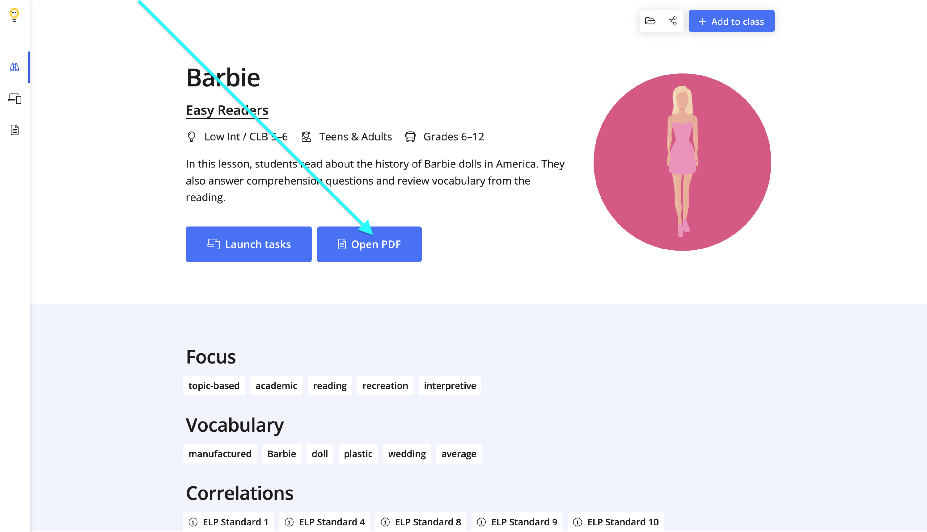 After clicking on the lesson title, you will be taken to the Lesson Landing Page. Click on Open PDF.