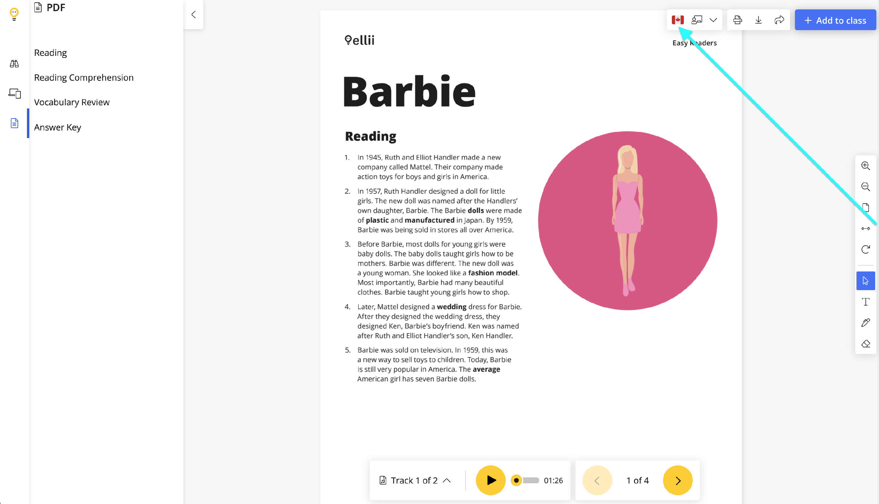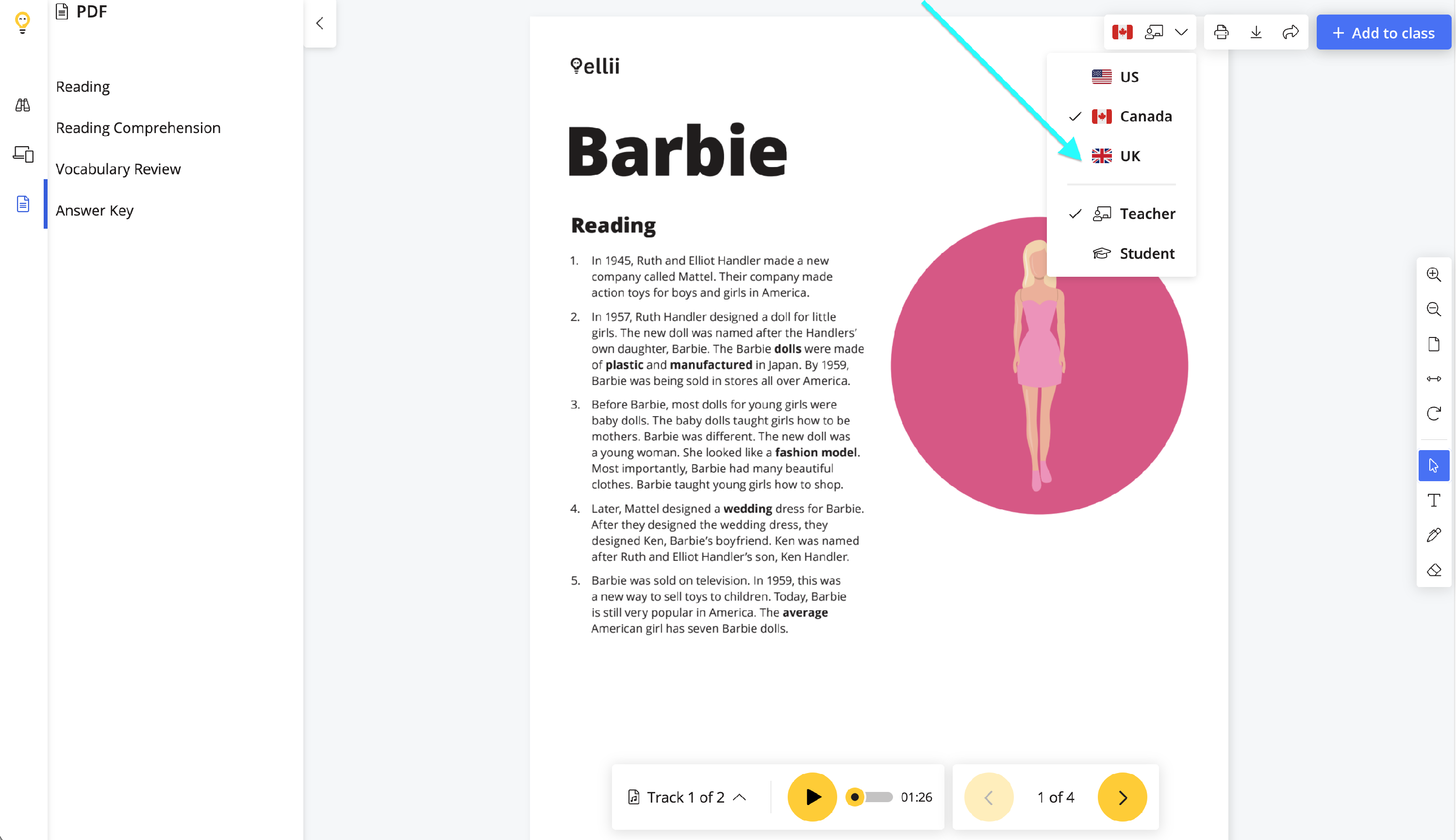 Ellii's ready-made lesson PDFs are currently available with either British*, American or Canadian spelling. To print lessons with your preferred spelling, please follow the instructions below.