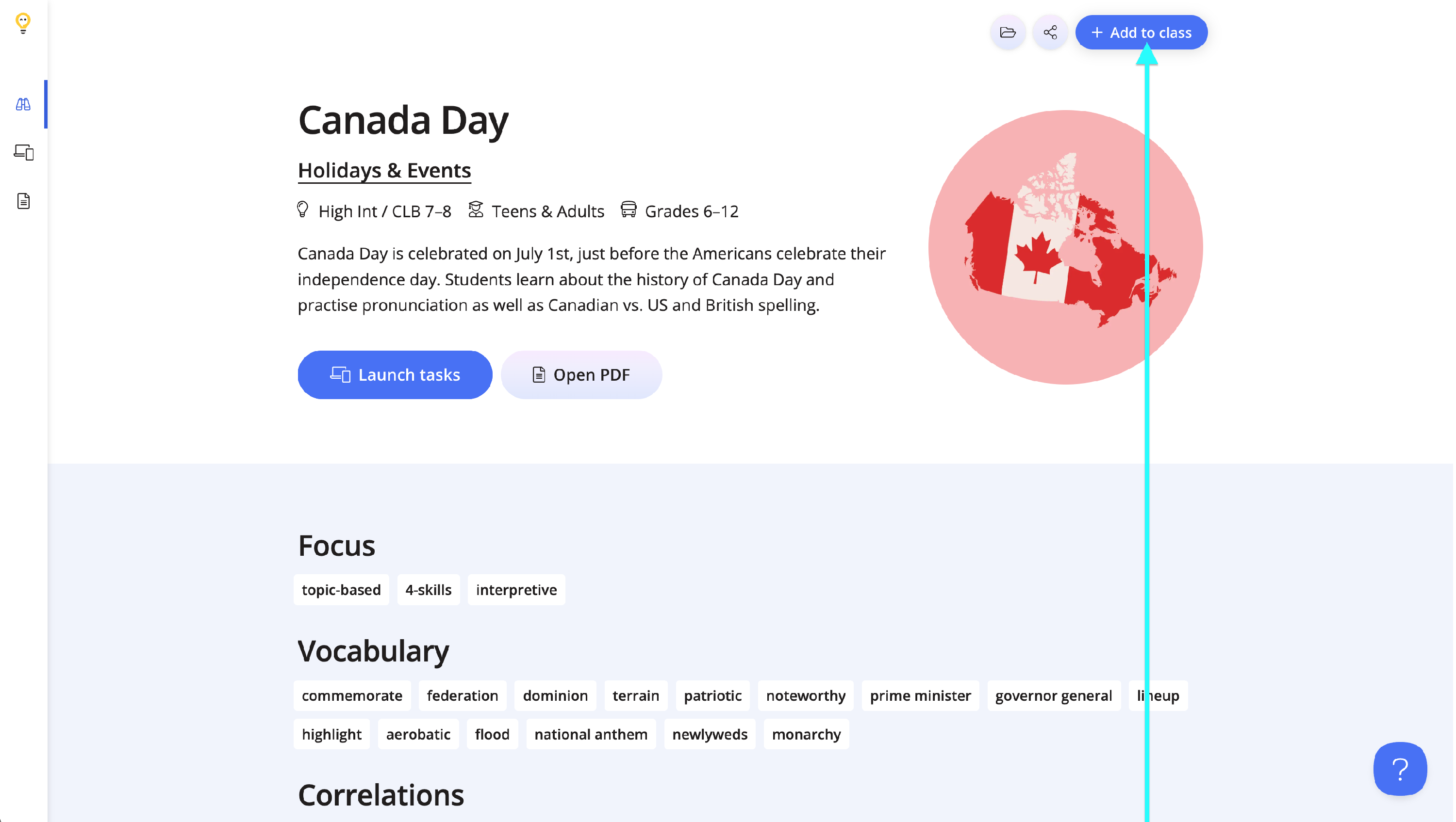 Once you find a topic that would interest your students, click on the topic and the corresponding materials will expand underneath it.
