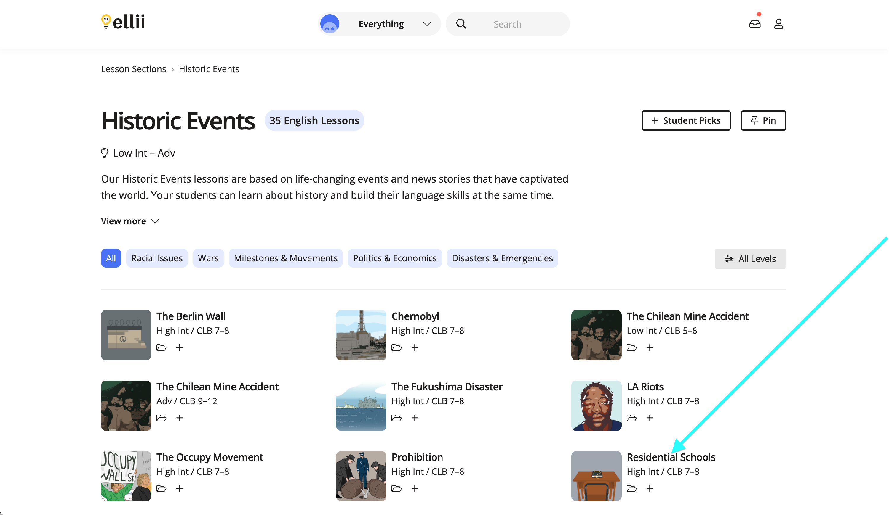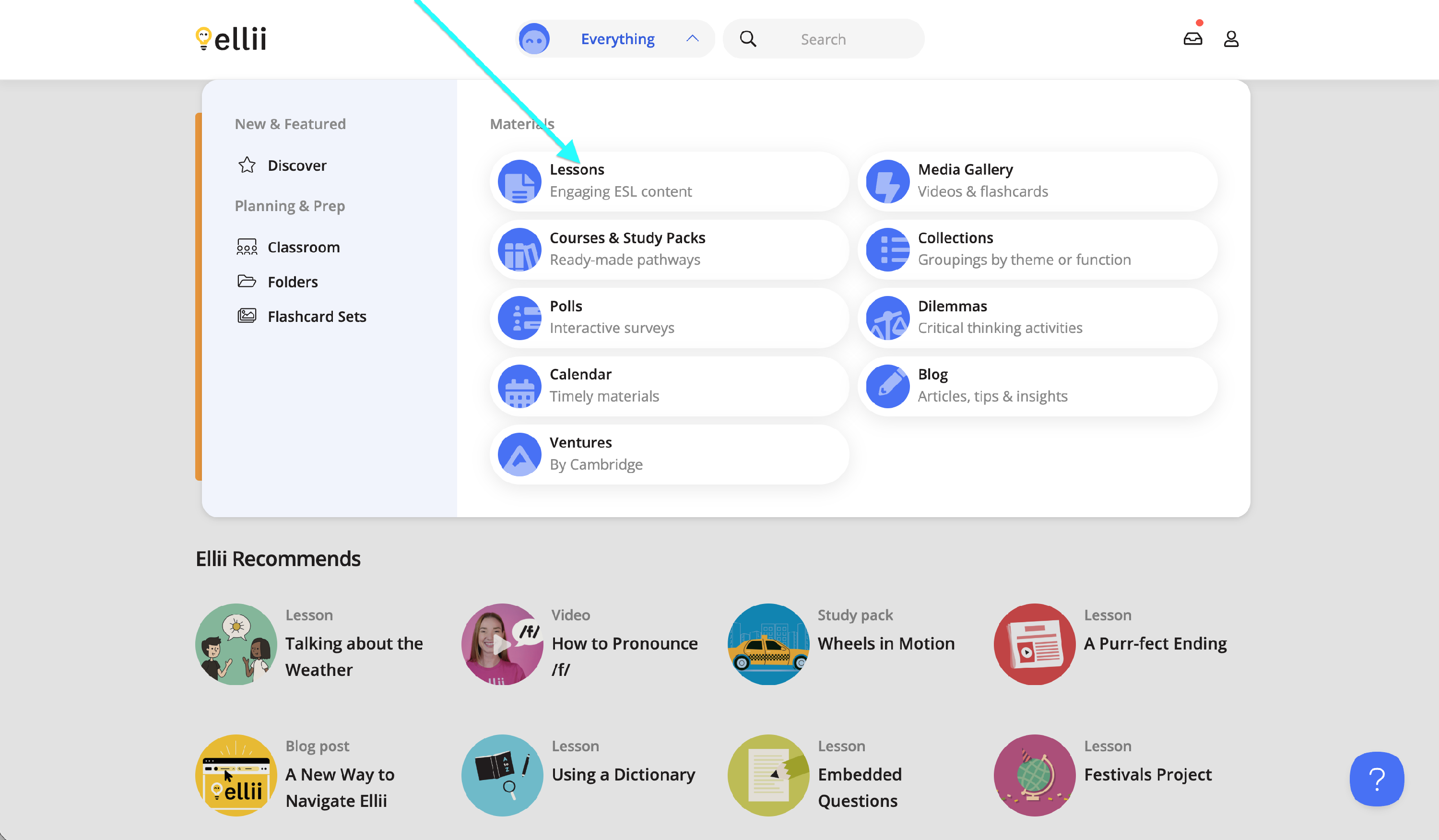 Click on the Everything menu and select Lessons.